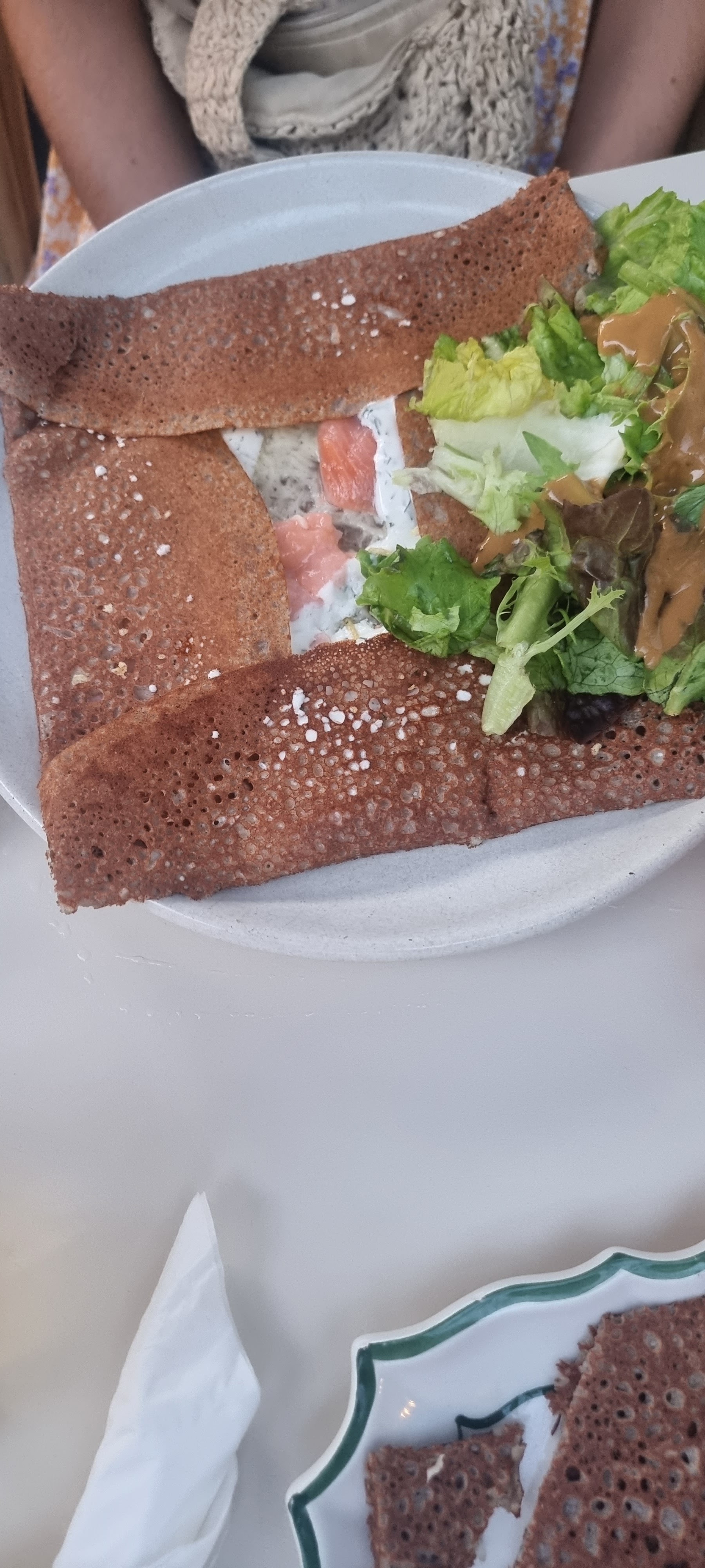 Belle expérience avec un accueil chaleureux et très attentionné des serveurs. Nous avons pris une salade caesar et une crêpe complète, c'était très bon ! Merci ! Nous recommandons +++ Des nordistes en balade :)