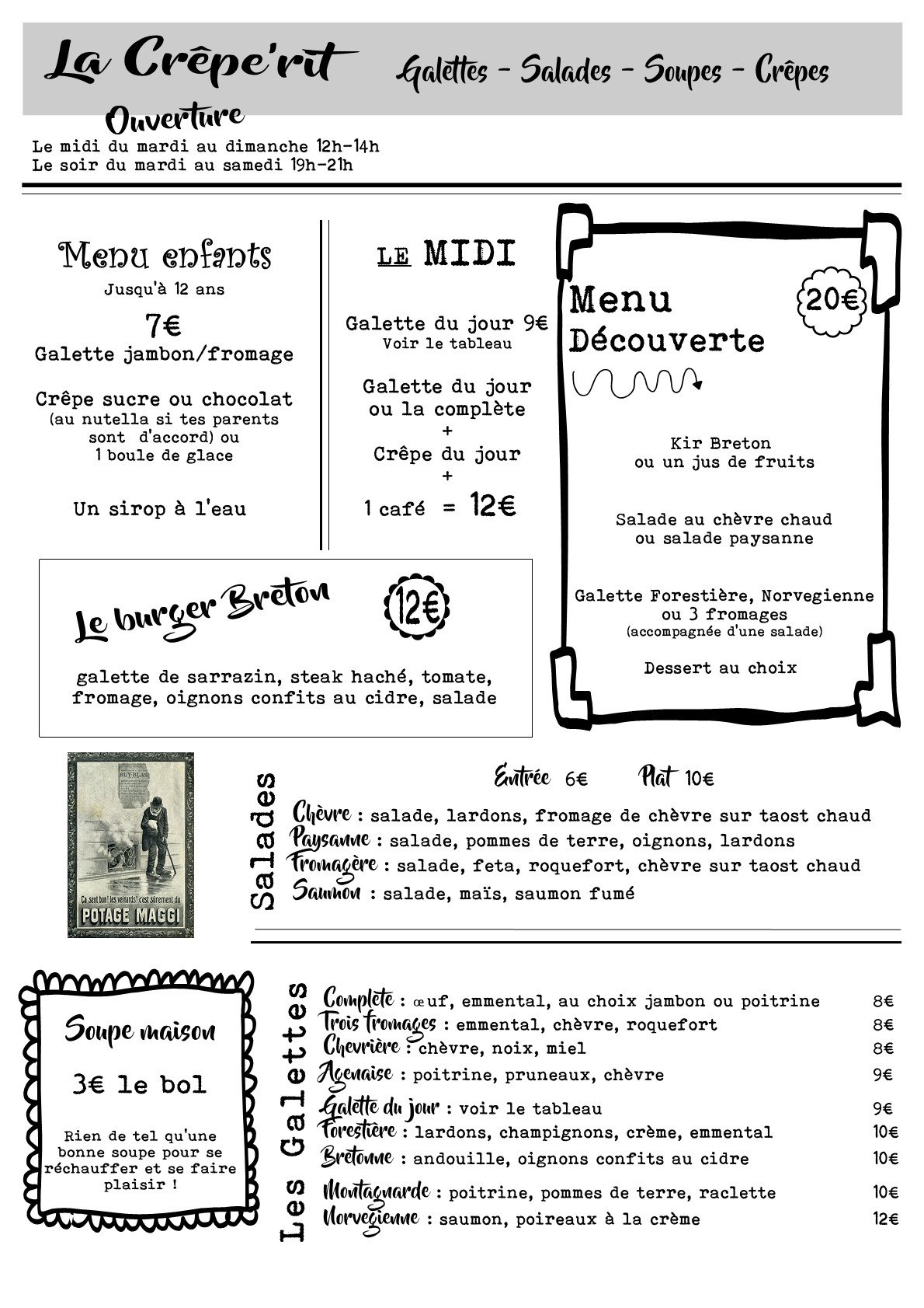 Une crêperie ou l on mange très bien. Un lieu agréable et la gérante est super gentille. Vraiment super et des prix raisonnable. Merci.