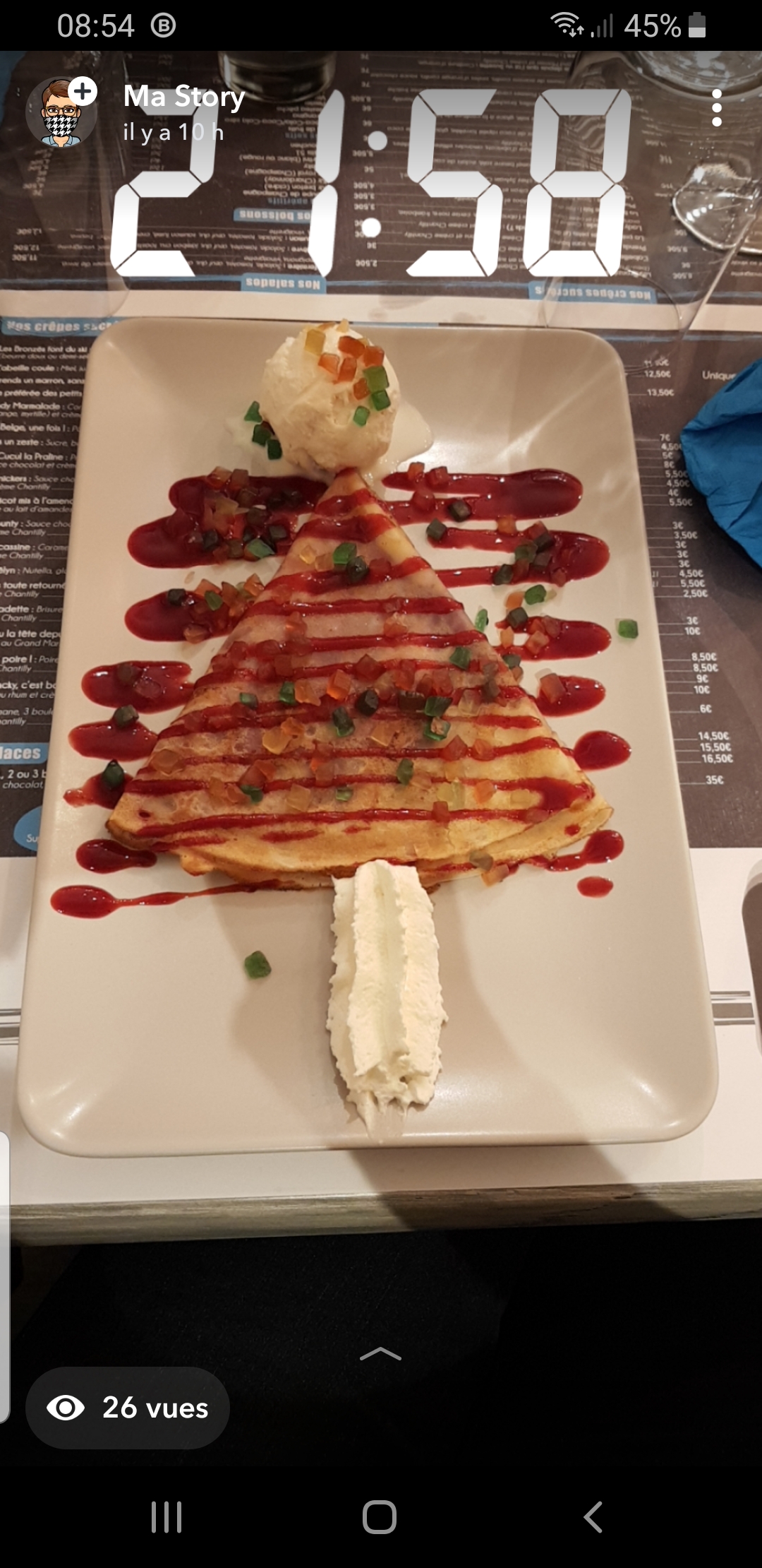 Malgré un petit retard suite a une crevaison, nous avons passé une bonne bonne soirée. L accueil des propriétaires très agréable et alors les crêpes !!!! Une tuerie !!! Celle au foie gras pommes caramélisées et le petit sapin en dessert ( que l on nous recommandé) je les conseille fortement !!! Un régal....nous y retournerons 😘 merci a vous et joyeuses fêtes de fin d'année 🌲🎅