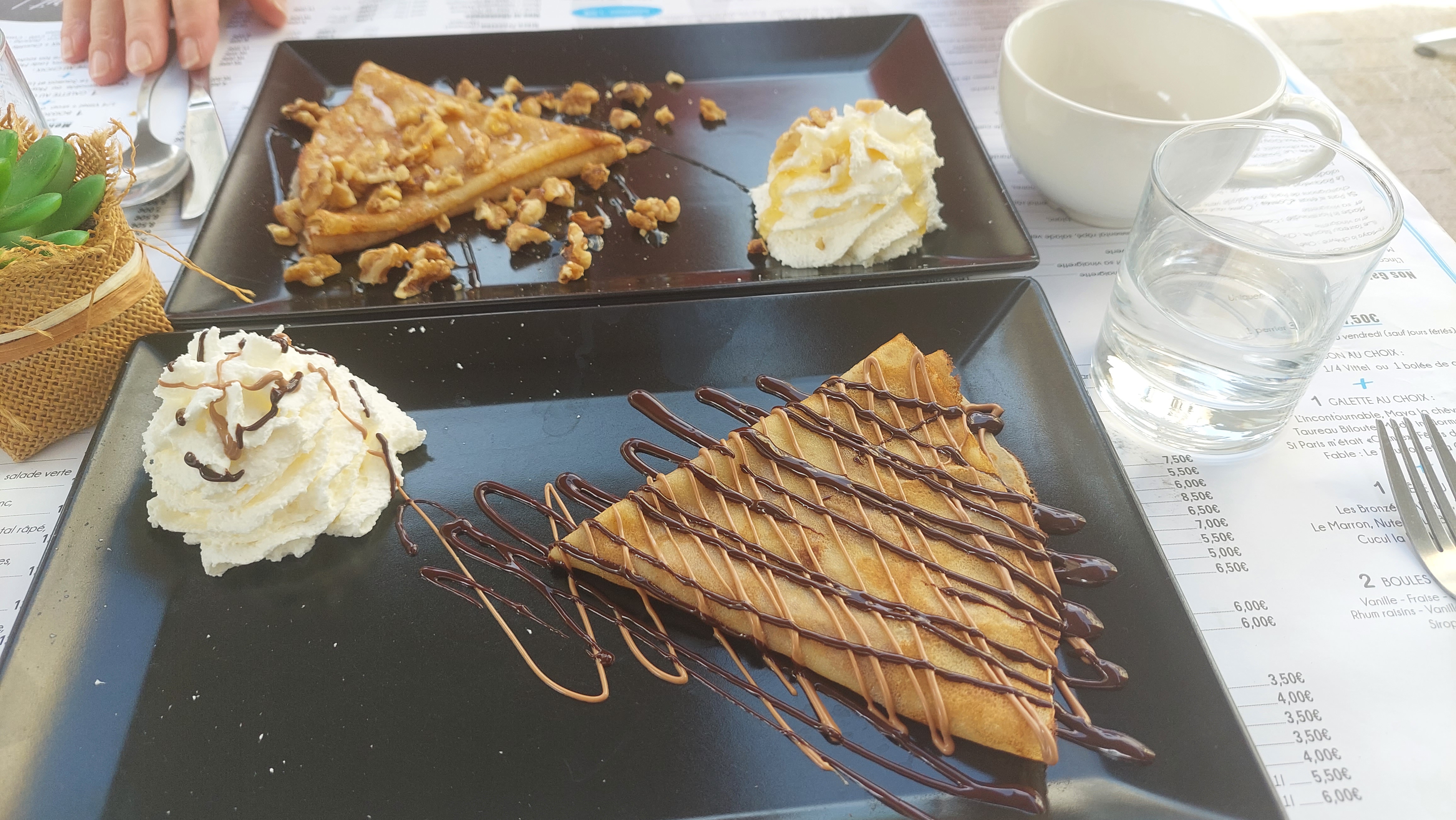 Tout était parfait ! L’accueil, le service et bien sûr les crêpes, salées et sucrées. Les noms sont rigolos et évocateurs de ce qu’elles représentent. Petit plus, le serveur est né dans la ville d’où nous sommes, alors que nous étions en week-end à 200 km de chez nous. Le monde est petit !