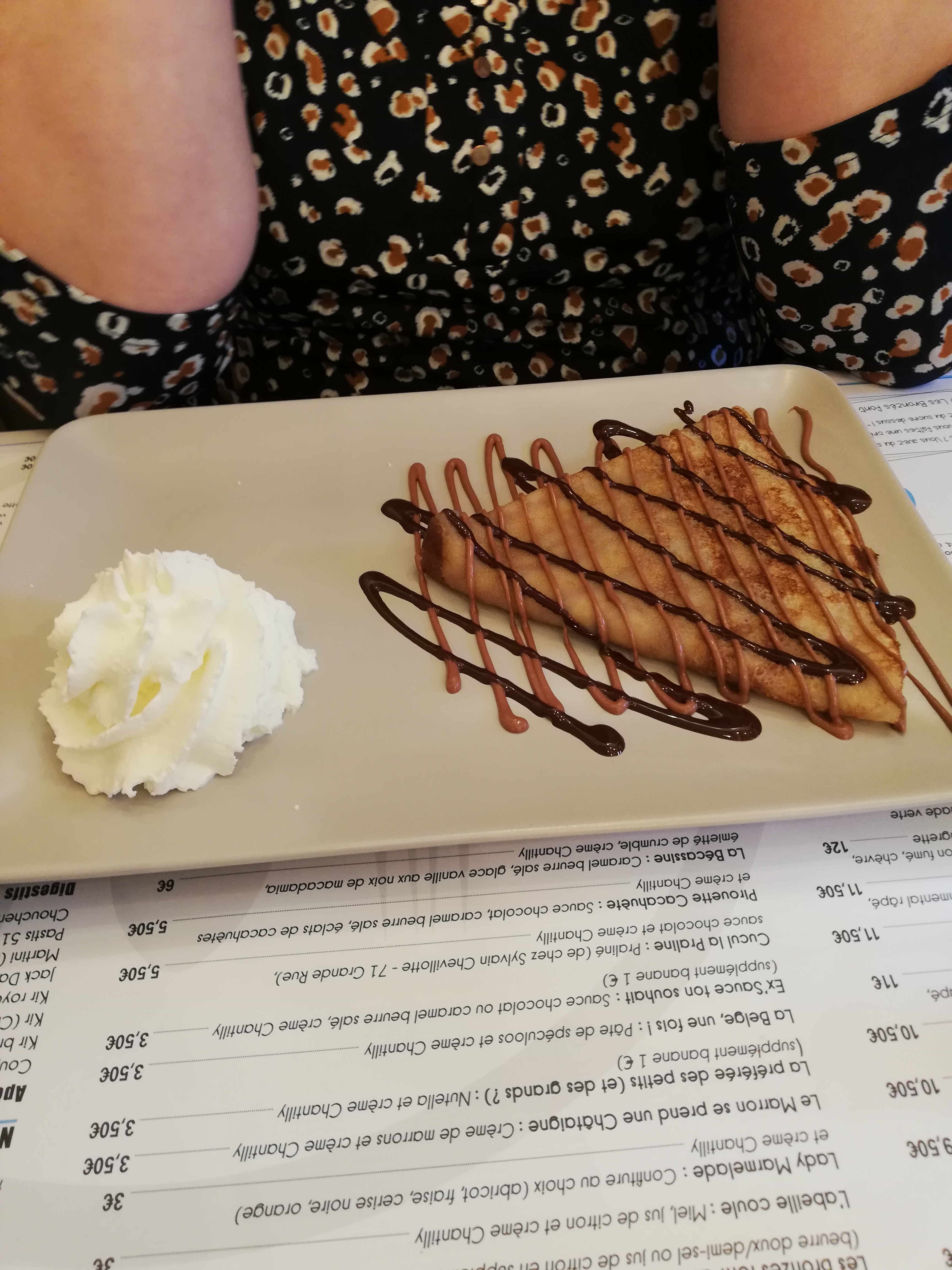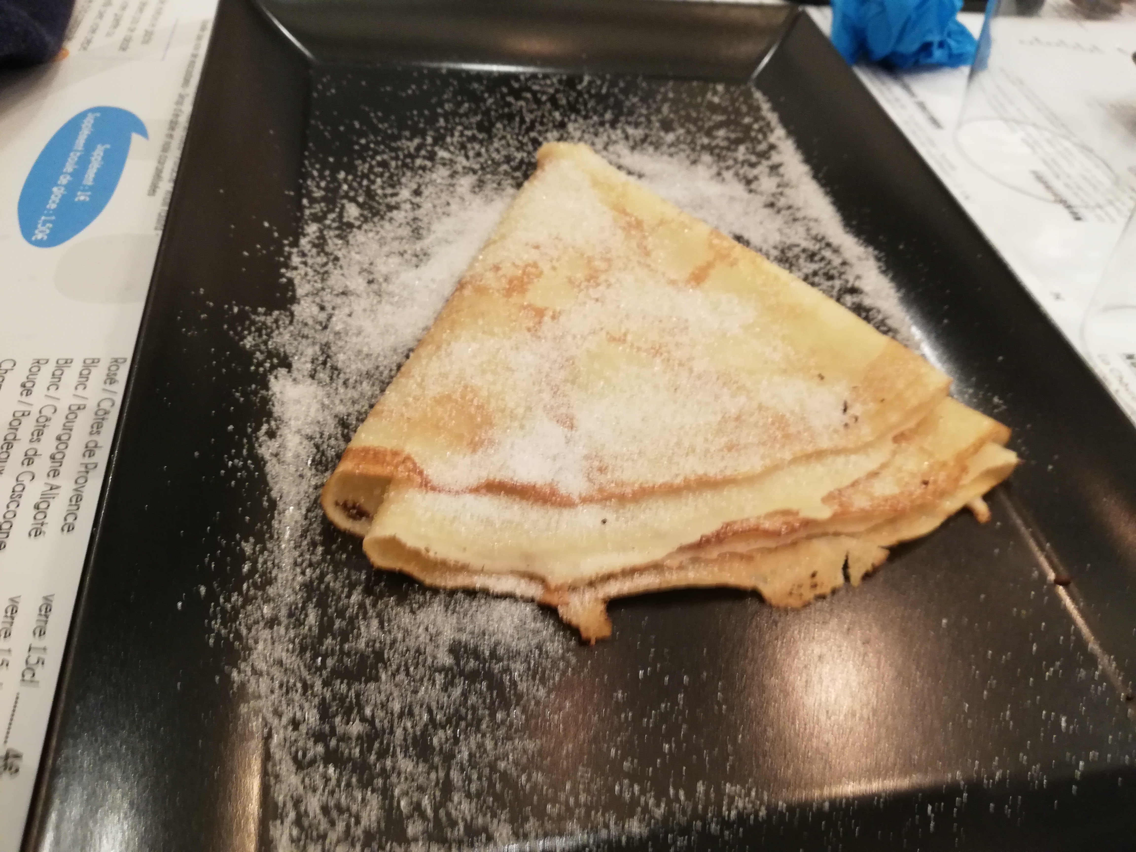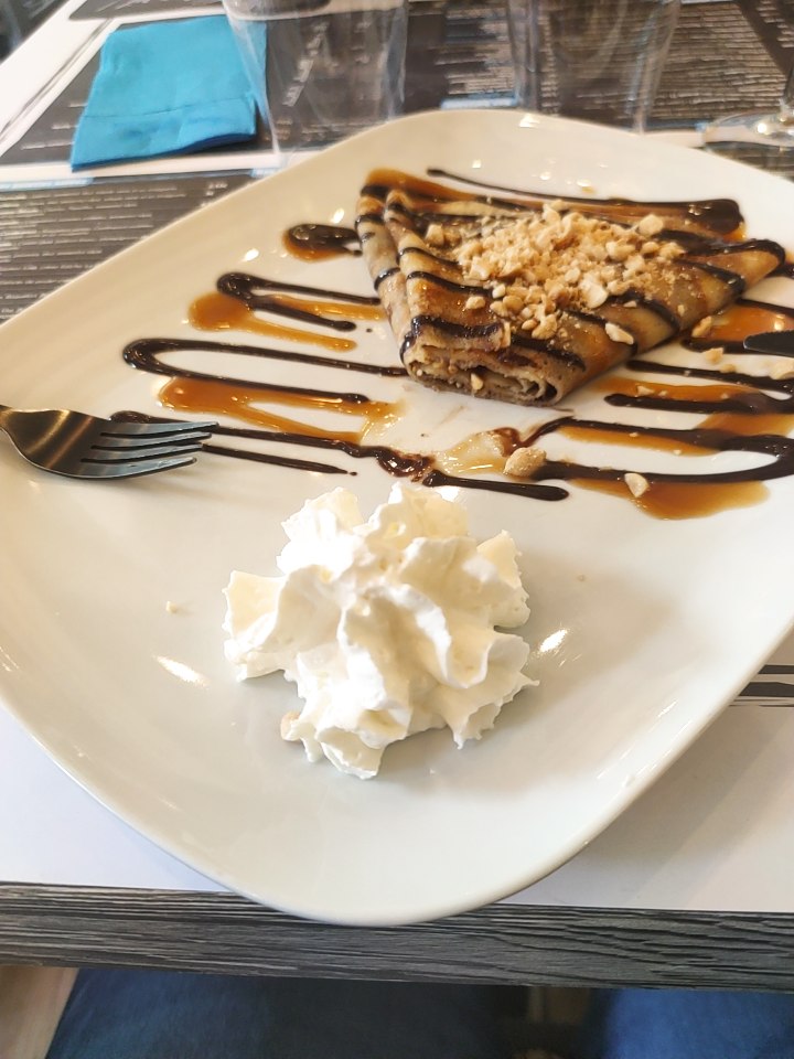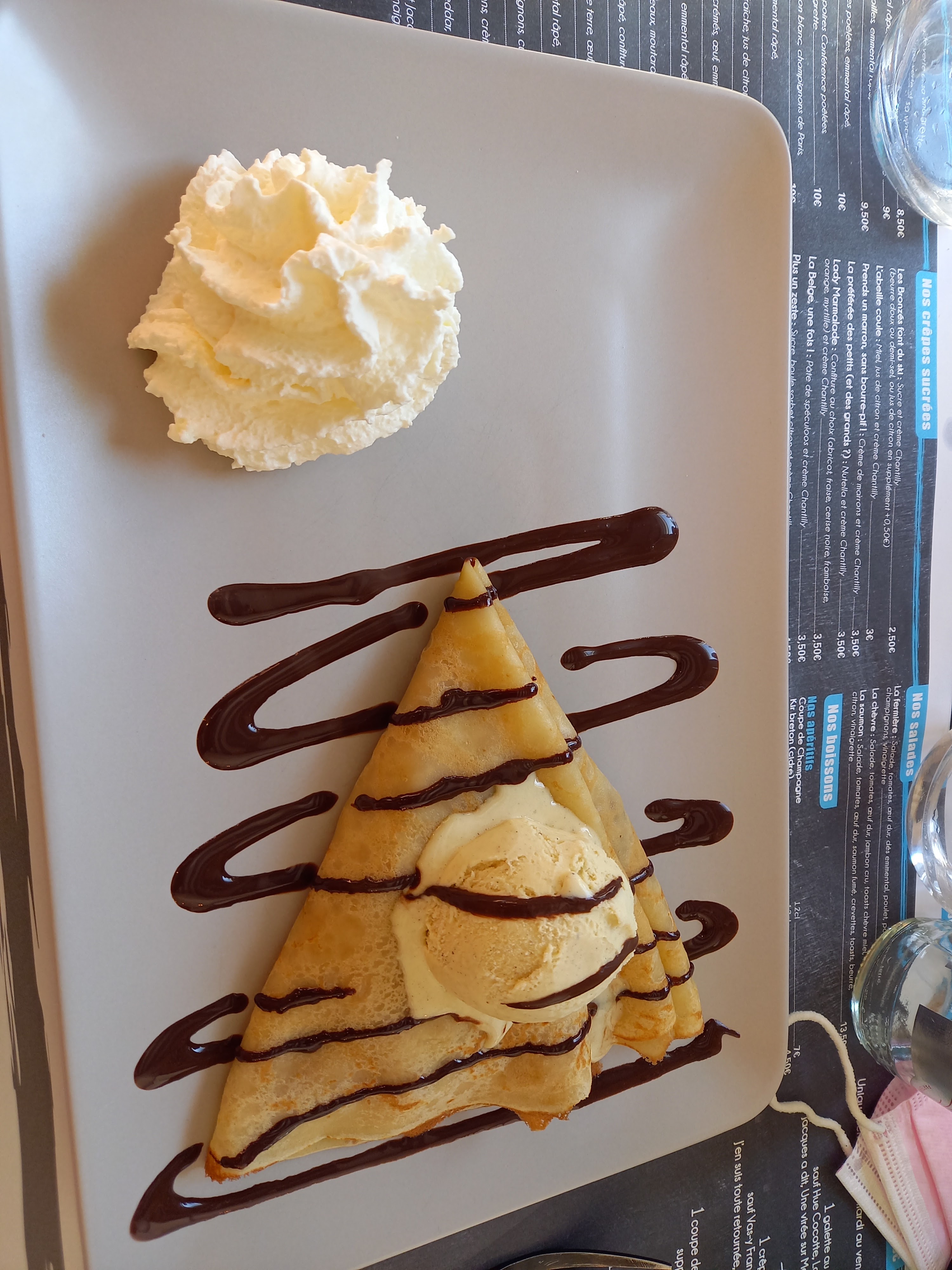 Rien de spécial. La crêpe était trop sèche, trop cuite, c'était le désert👌. Respect