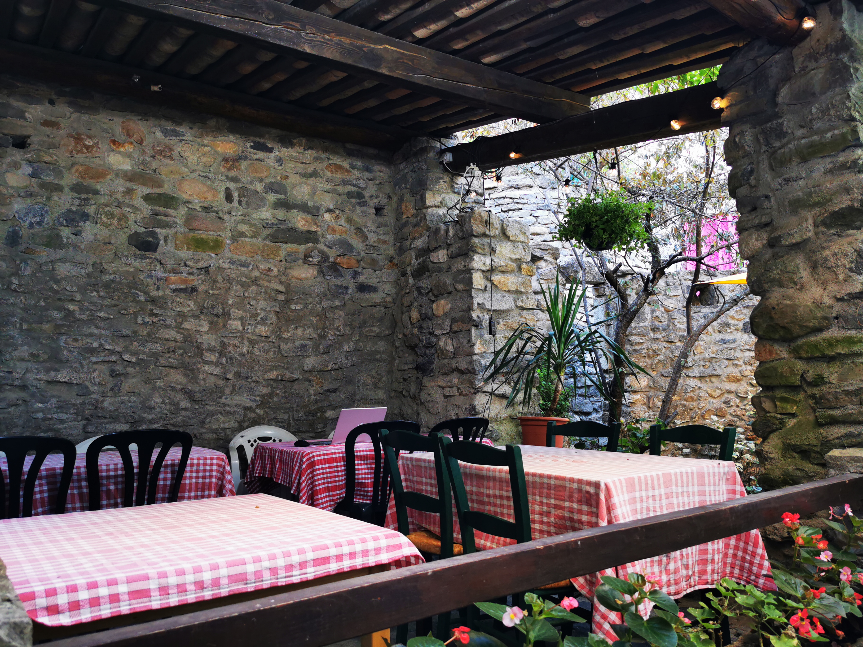 Petite crêperie ombragée nichée sur les hauteurs. Personnel très sympathique, presque une pépite bien cachée. Pour la digestion, rien de tel que de visiter les vestiges au-dessus de la crêperie.
