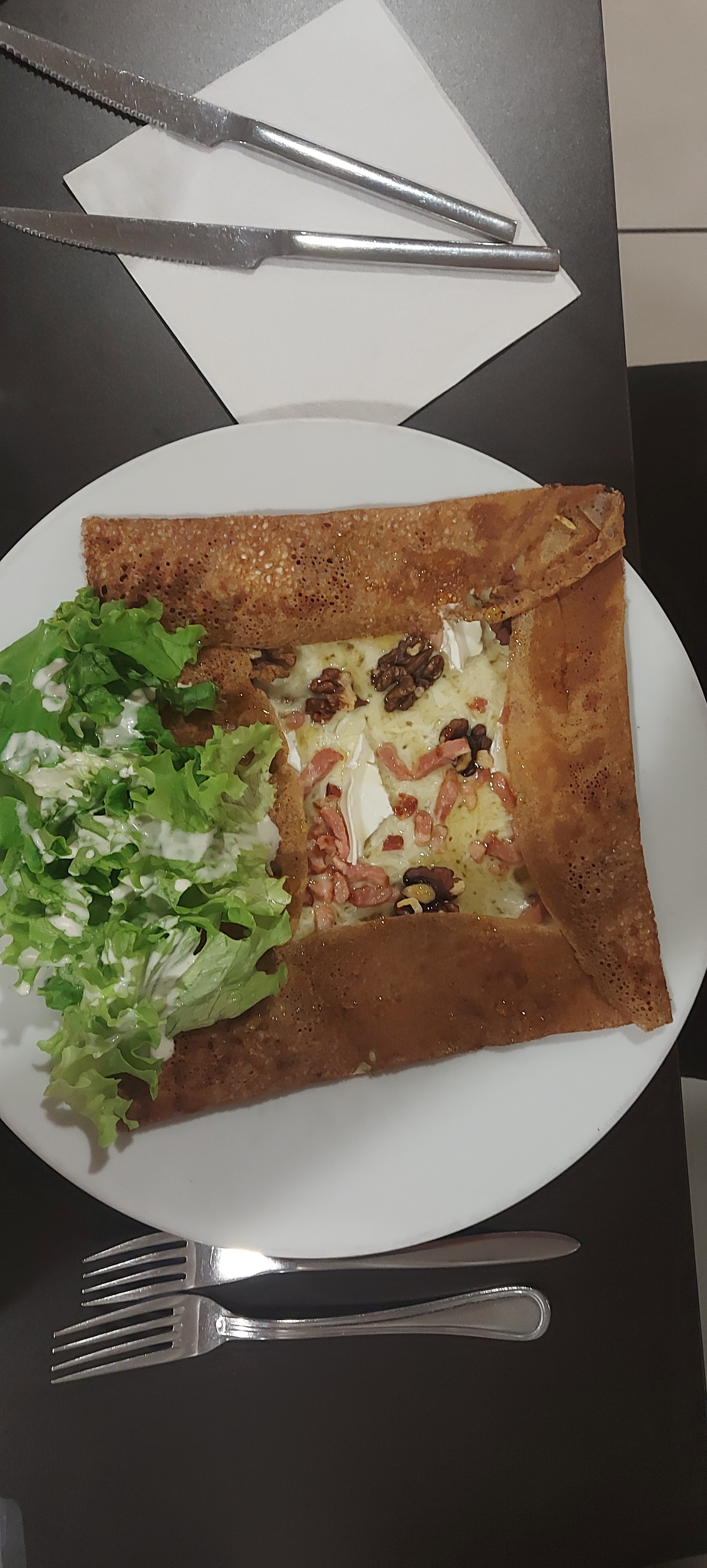 Un établissement génial, des crêpes délicieuses comme en Bretagne, garnies généreusement de produits de qualité, de délicieuses salades aussi ,un service rapide et un personnel accueillant souriant et très serviable ! Je recommande grandement ce restaurant, vous ne serez pas déçus !