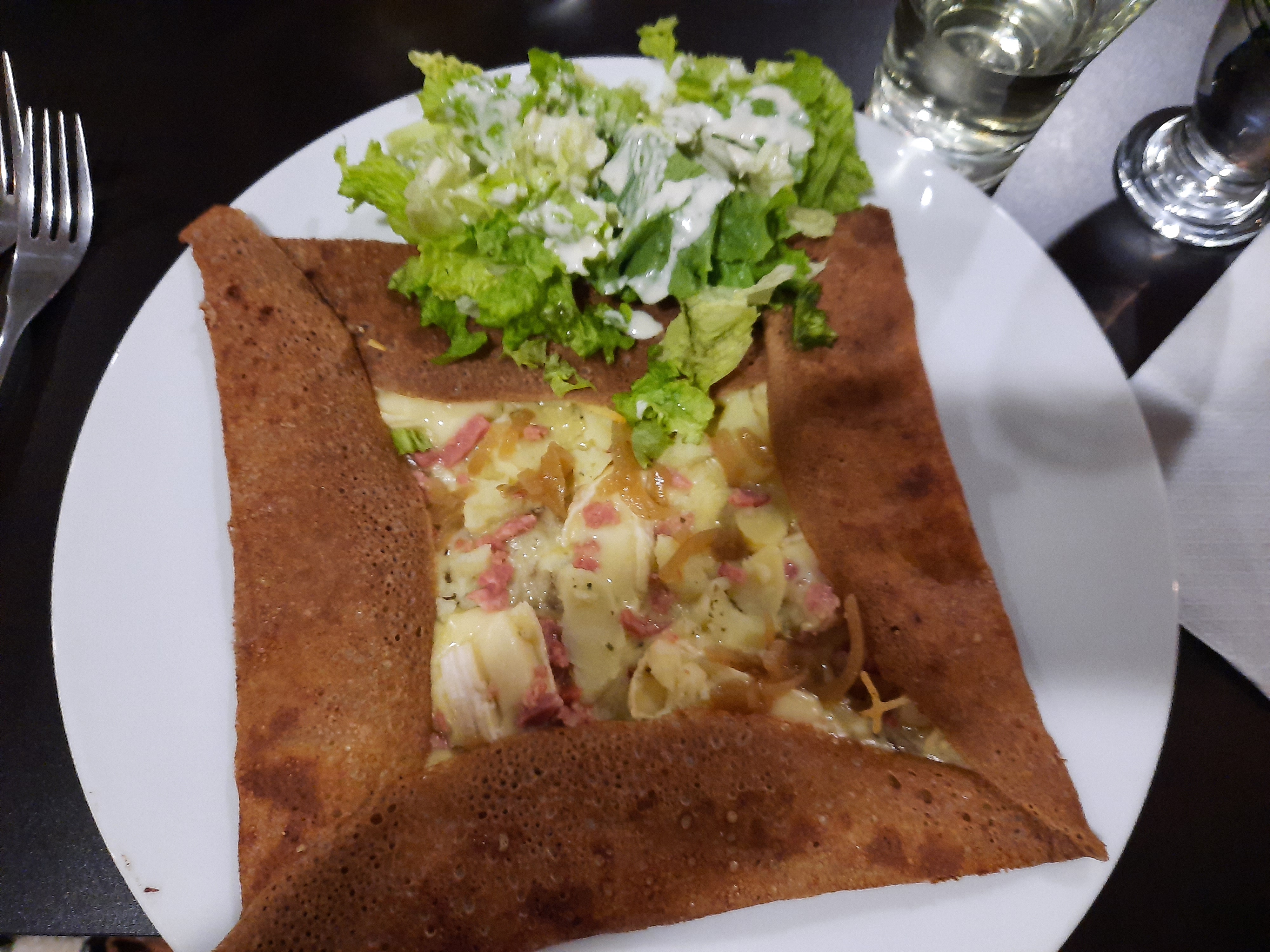 Crepes sarrazin un peu seches. Pommes de terre à l'intérieur meriteraient d'être revenues à la poêle avant . Crêpes sucrées excellentes
