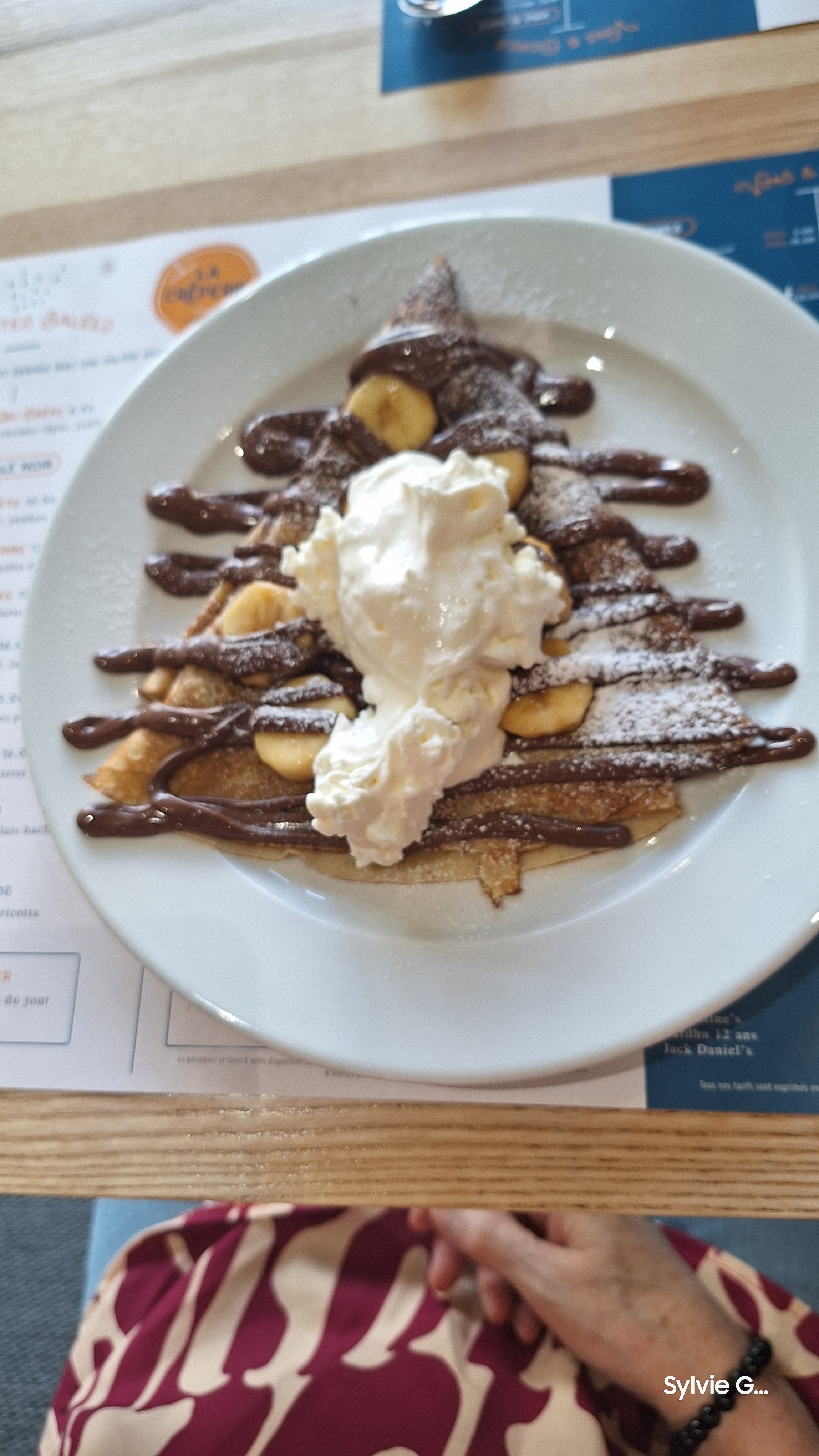 Arrivée dans un cadre magnifique, se mettre à table, être accueillie par de charmantes personnes } pour déguster de succulentes crêpes 🥞.... Que demander de +😄. PARFAIT 👌, allez tester vous même 😋