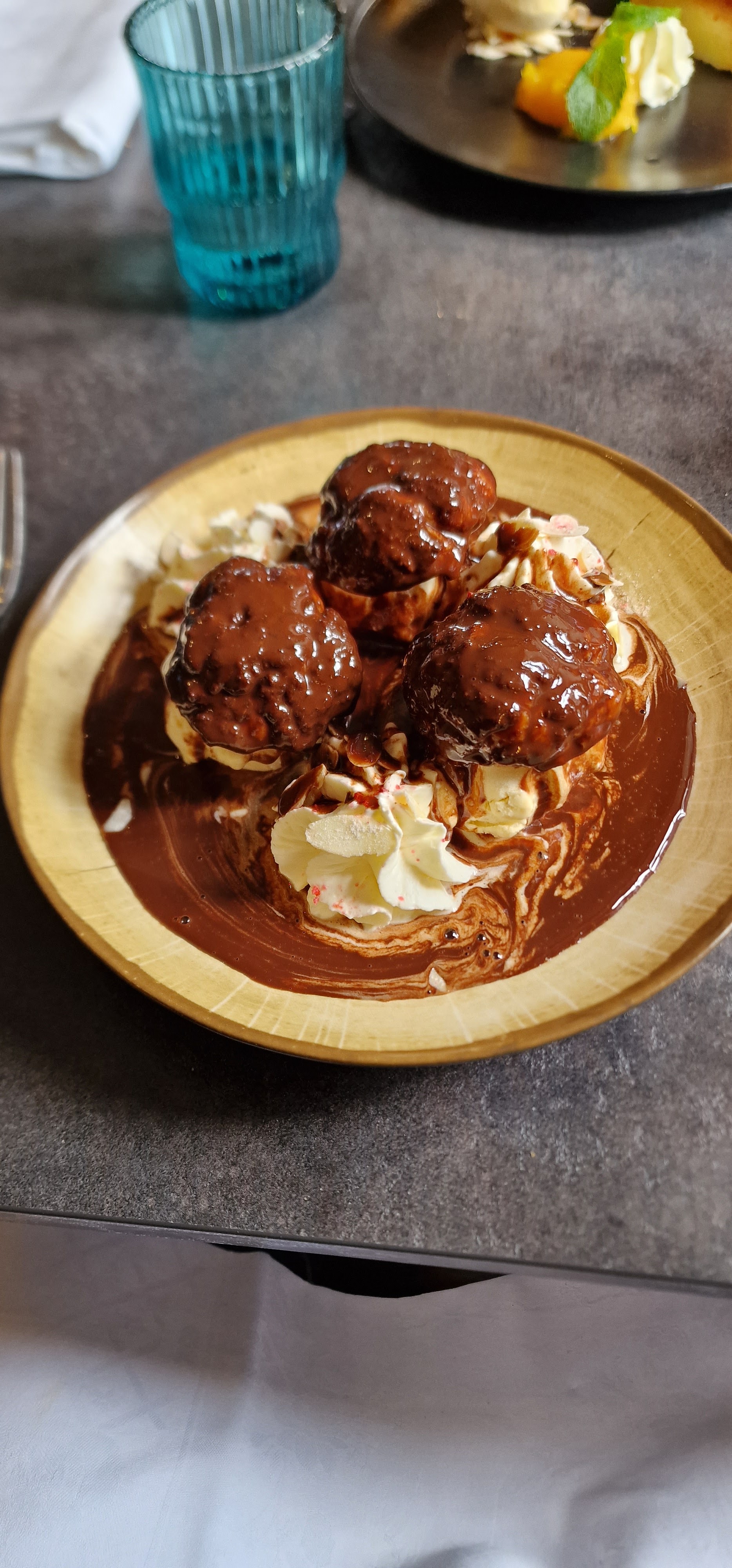 Très beau cadre, les patrons sont sympa et très professionnels, très bon menu.... Petit bémol sur les portions un peu faible surtout le foie gras par contre profiterollle copieuse et délicieuse ... Se rapproche d'un resto gastronomique... Merci pour votre accueil