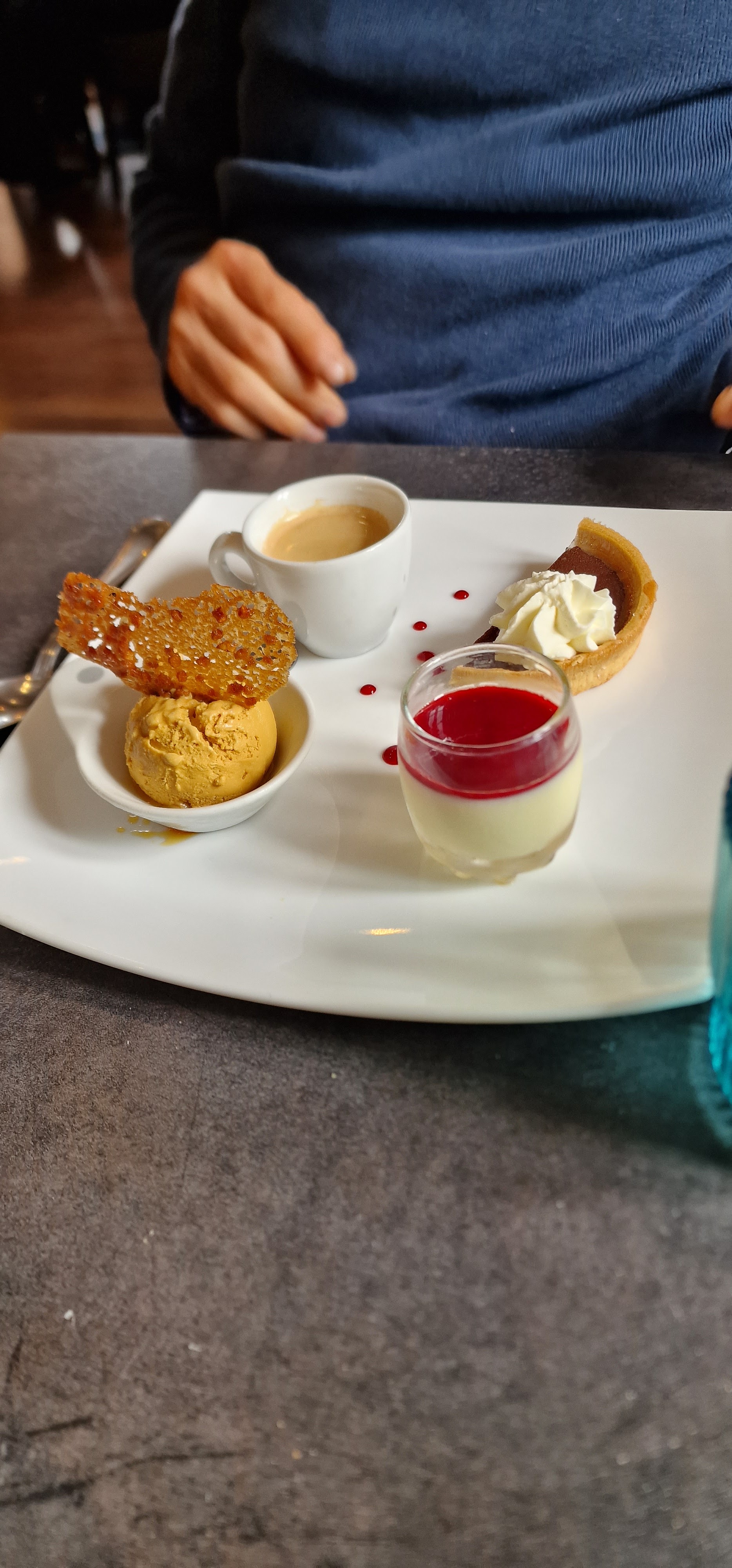 Excellent accueil, personnel gentil et prévenant. Très bonne cuisine dans un cadre agréable. Je recommande le café gourmand.