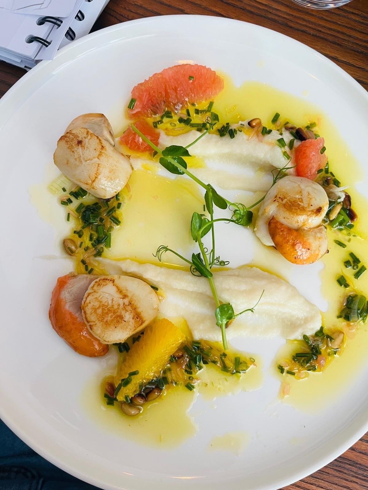 Mangé des très bonnes saint Jacques. Le dessert (genre glace nougat) pouvait être un peu meilleur mais globalement un très bon menu.