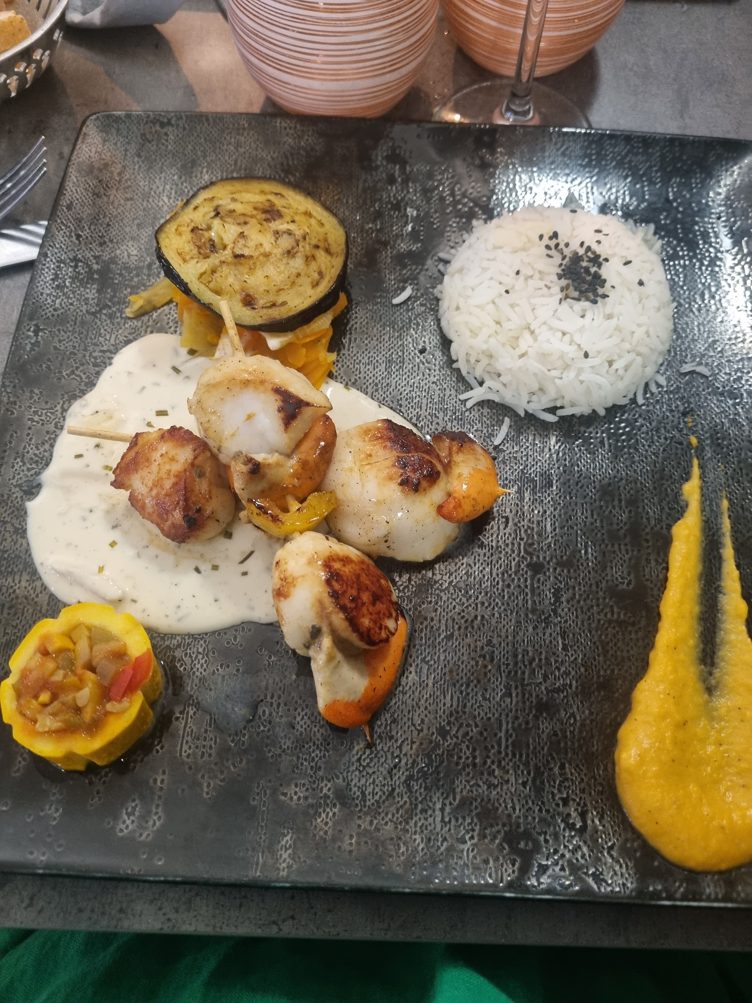 Petit restaurant familial avec une excellente ambiance. On y mange très bien . Le personnel est hyper gentil et serviable même avec les clients chiant comme moi qui lisent pas bien le menu et qui renvoie leur assiettes. La brochette de saint-jaques , Une turie .