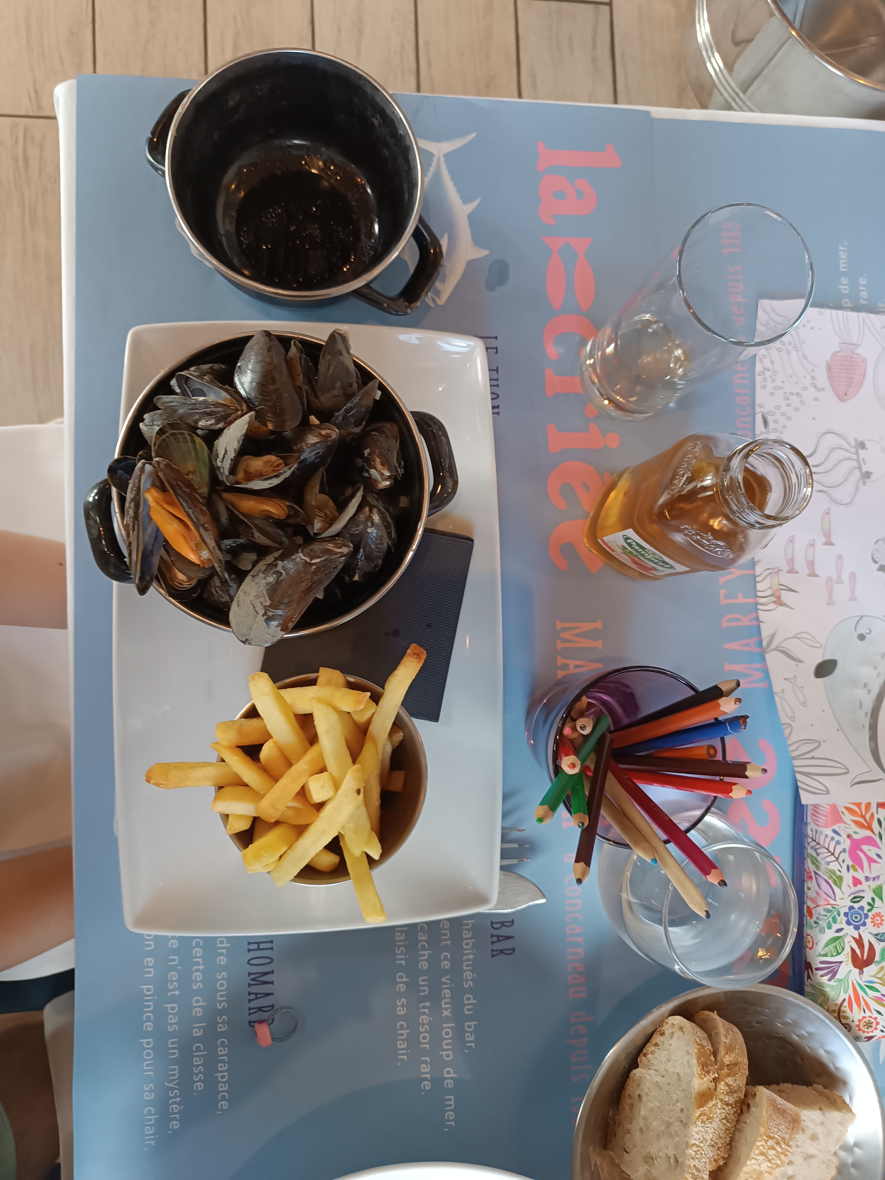 Serveurs et serveuses très sympathiques. Service très rapide et chaleureux. Moules bien charnues et casseroles copieuses. Menu enfant très apprécié par notre fille. Nous n’étions jamais venus, mais nous reviendrons avec grand plaisir.