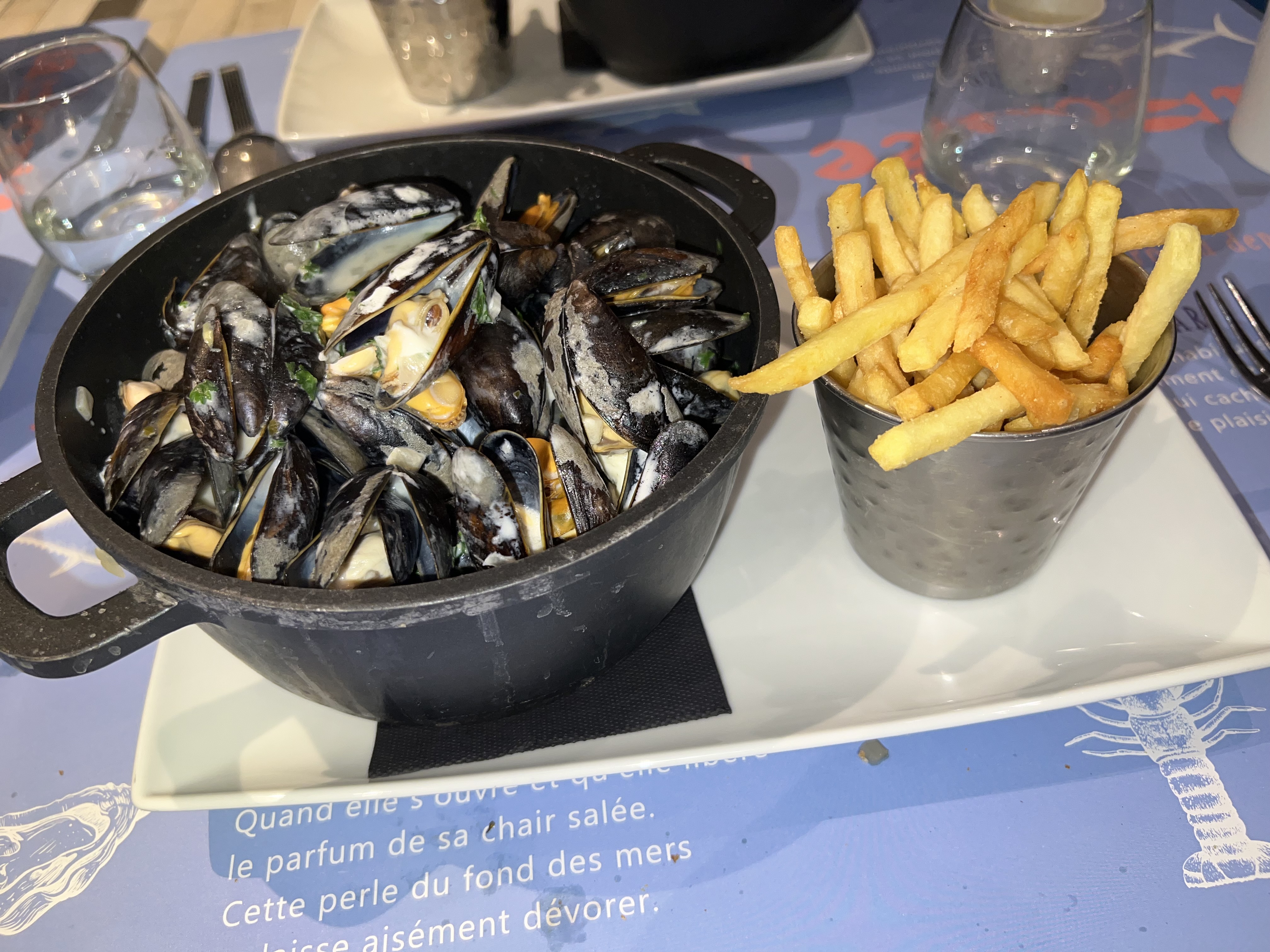 Les moules ainsi que les frites étaient excellentes Rien à dire au niveau des sauces également. Les serveurs du restaurant sont très sympathiques (merci de m’avoir rappelé pour récupérer mes lunettes 😉) Je recommande fortement