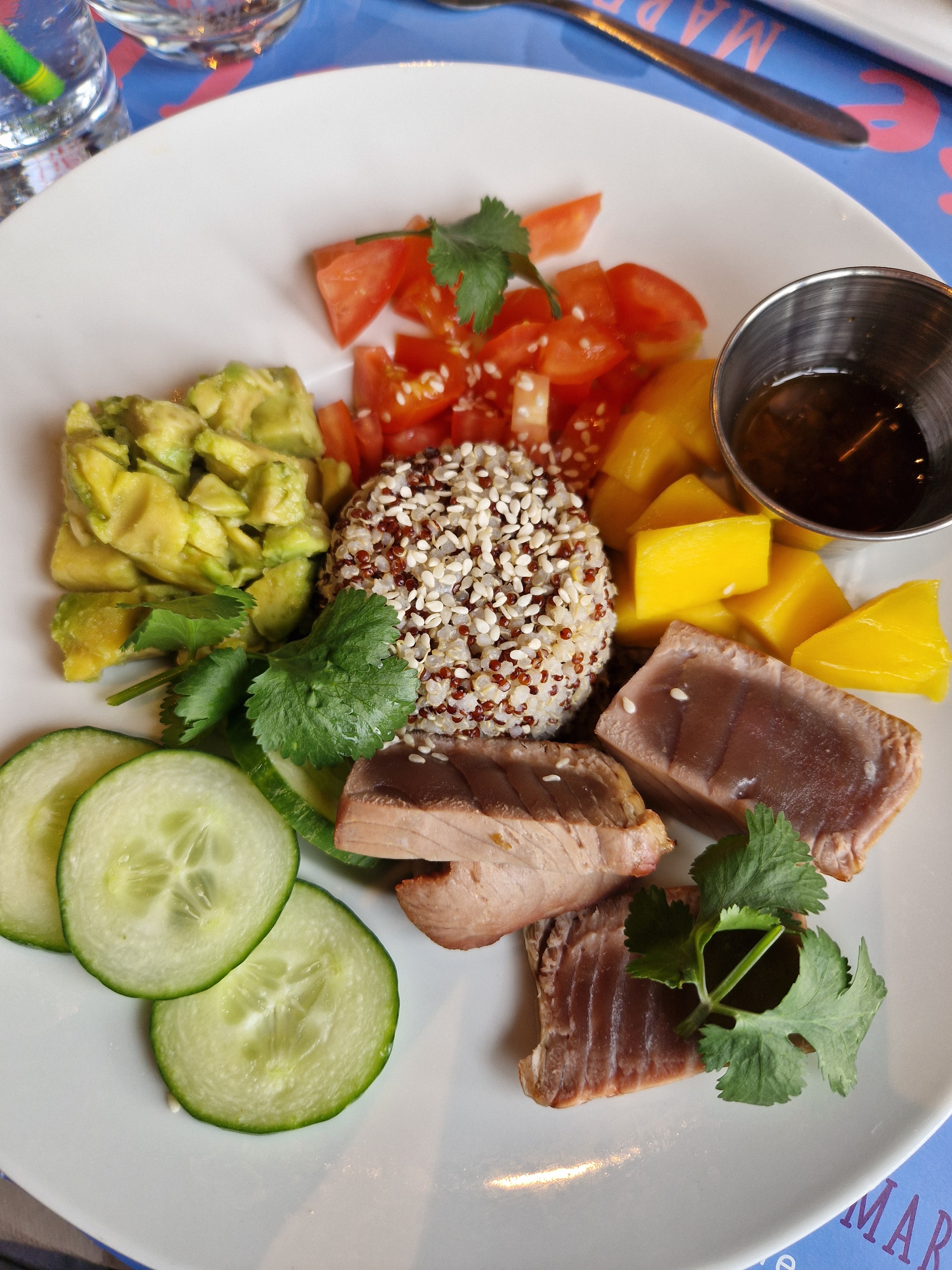 Je suis restée sur ma faim, le plat + dessert ne m'a pas suffit alors que je mange peu d'habitude. Ceci dit, les produits sont plutôt frais mais je ne reviendrai pas tester les plats chauds car l'attente entre les plats était beaucoup trop long, le service froid comparé aux clients habitués. Le point positif : il y a peu de monde donc pas trop de bruit et le cadre est sympathique.