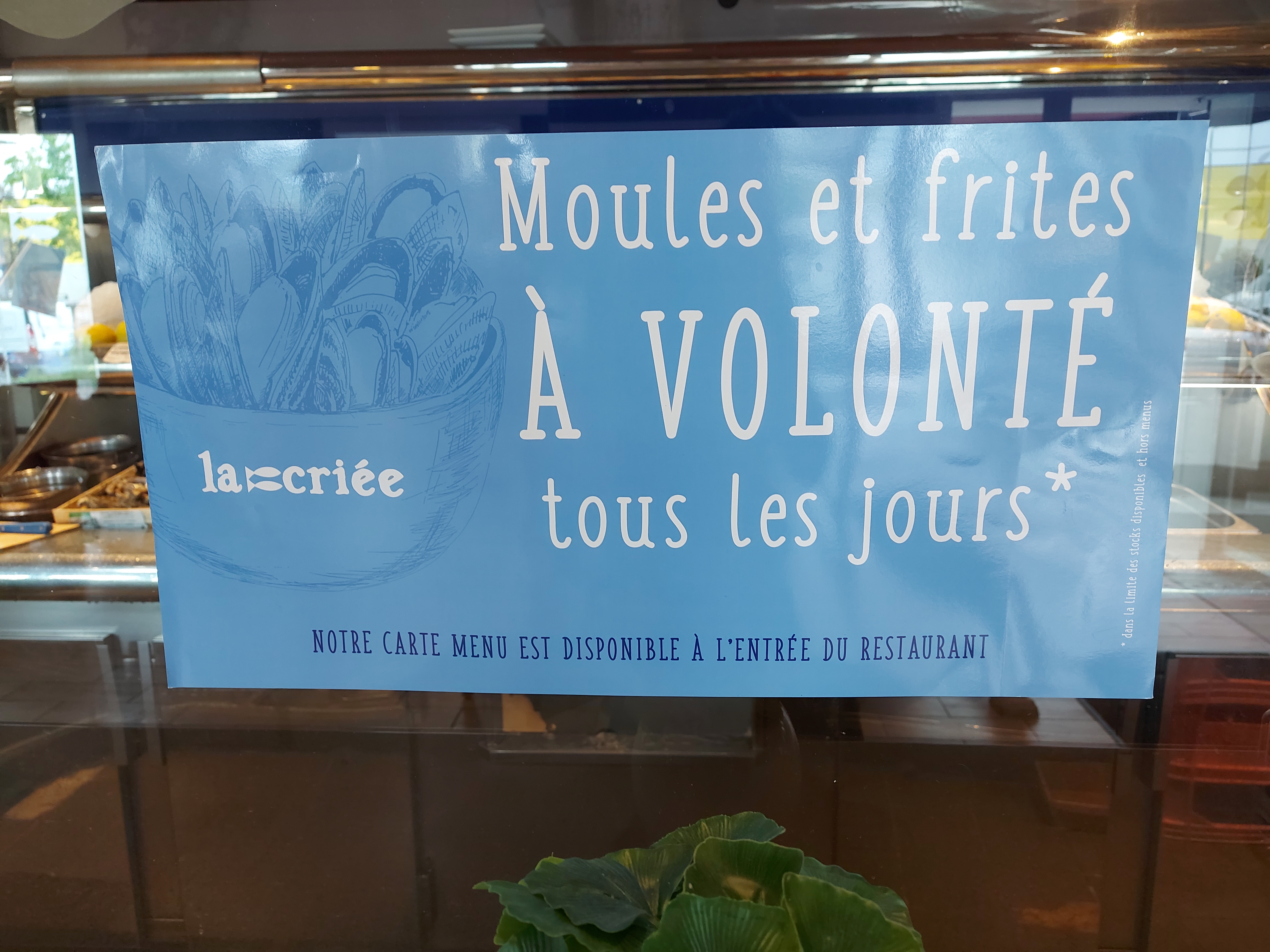 Bonjour de Los Angeles , quelle extraordinaire découverte,ce restaurant tout près de notre hôtel. D’une qualité parfaite,le service professionnel,les employées/ employés tellement sympas et à l’écoute de leur clients, merci pour votre chaîne La criée que nous avons découvert lors de notre dernière nuit en France. Une belle surprise ( nous avions été déçu de l’hôtel réservé) à une prochaine fois peut-être ,moules frites…à volonté wow.