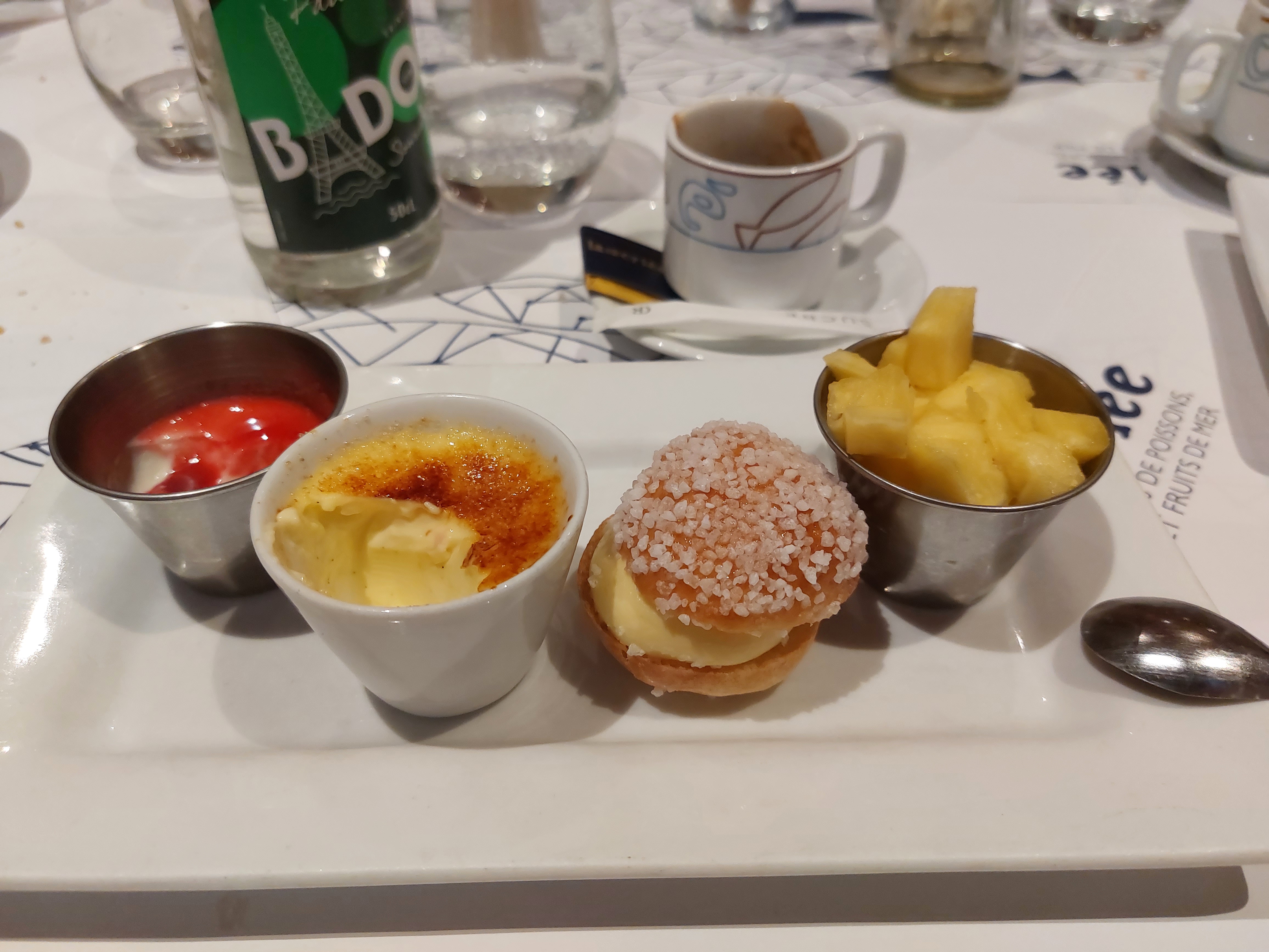 Un peu déçue par les moules marinières qui étaient sèches, beaucoup rabougris trop cuites. Par contre l'accueil, la table et le café gourmand bien.