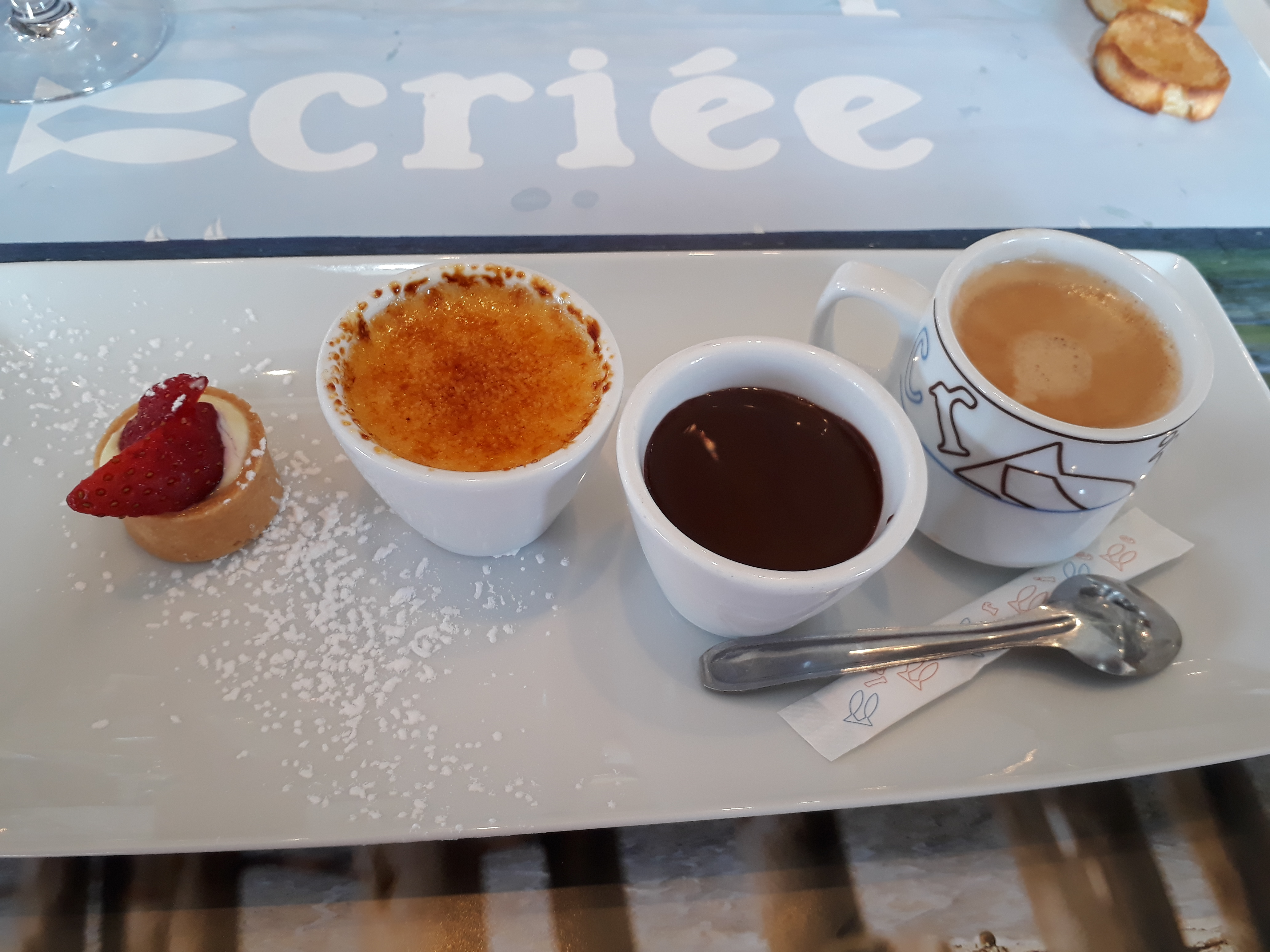 Plateau de fruits de mer extra Frais et délicieux. Panna cotta au top café gourmand. Aussi Je recommande