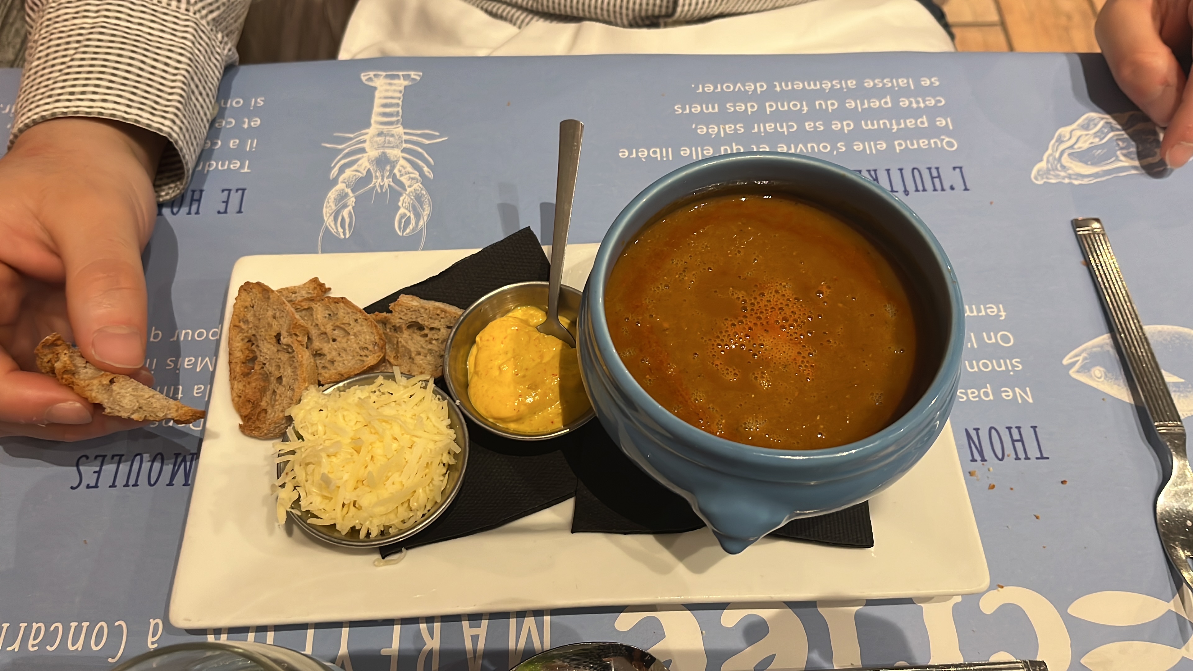 Nous avons passé un bon moment. La cuisine était bonne, un coup de cœur pour la soupe de poisson 🐟 Le serveur était souriant et professionnel 👍🏻 On reviendra avec plaisir.