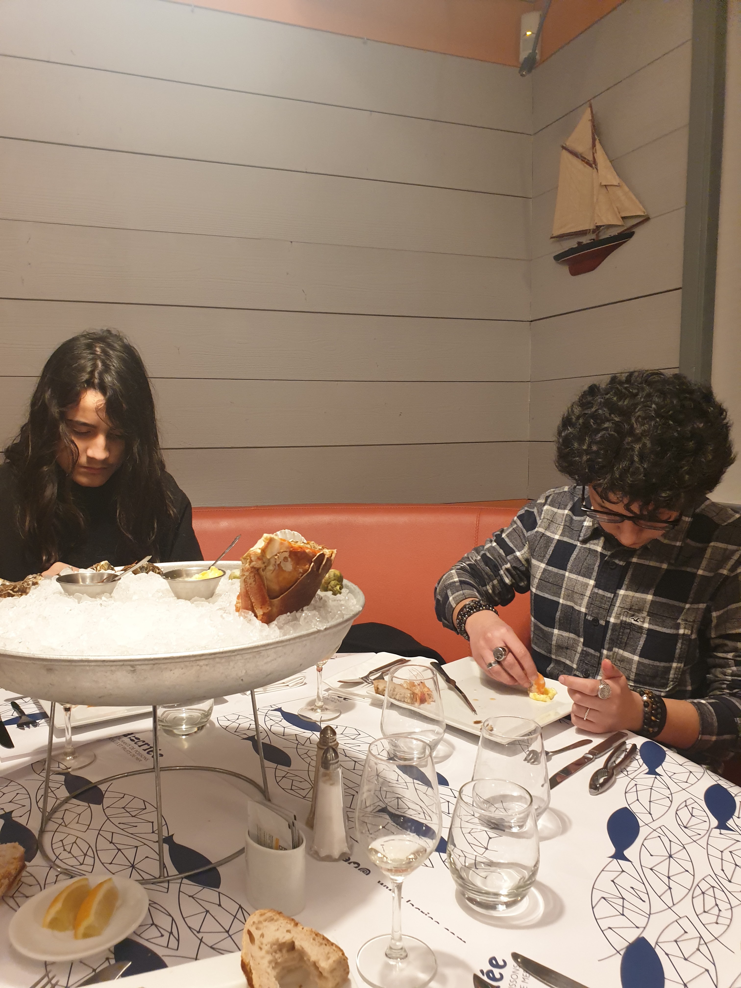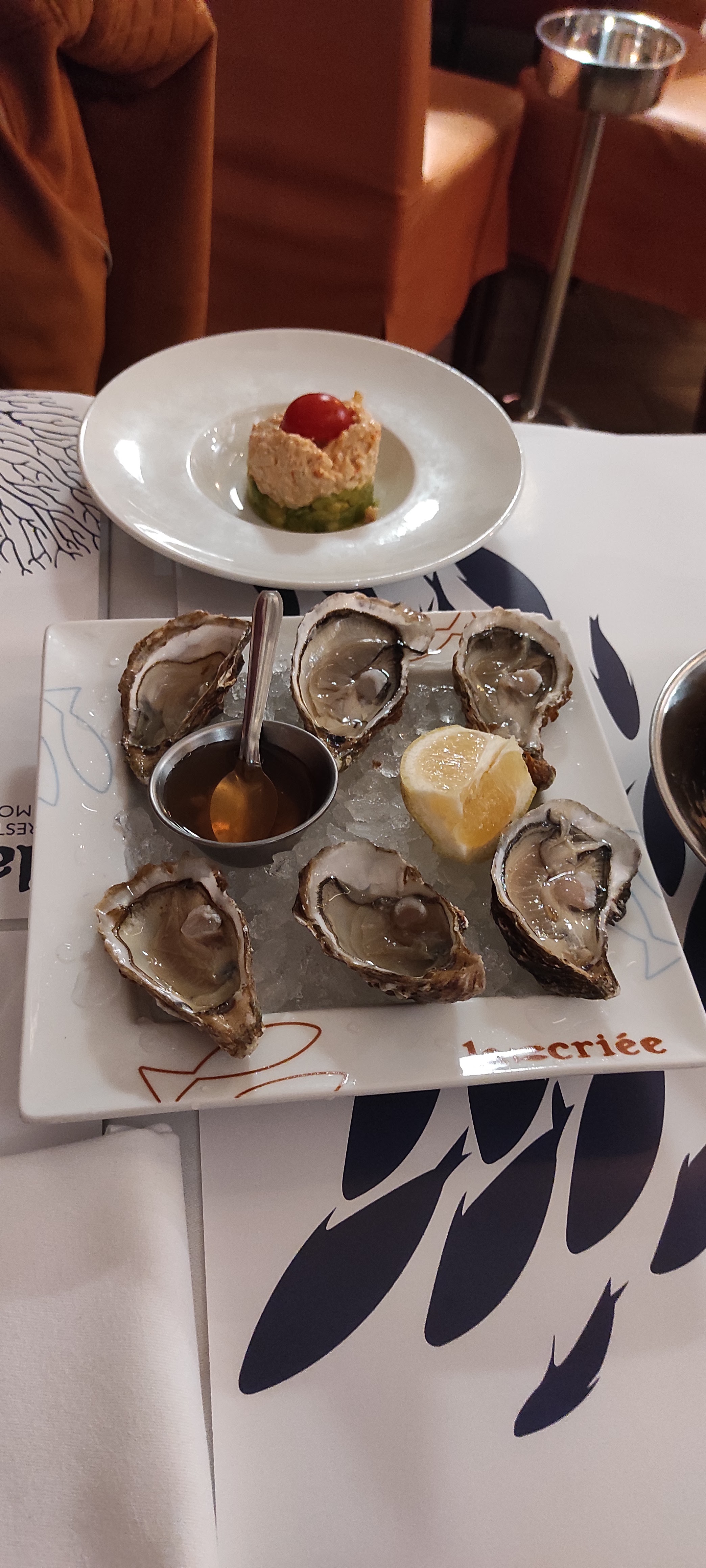 Assez déçue dans l'ensemble. Faussement guindé, ce restaurant n'est pas à la hauteur de ses prétentions. C'est cher et peu copieux. Les plateaux de fruits de mer sont énormes mais remplis de glace. Un apéritif nous a été proposé. La serveuse a avoué confondre muscat et muscadet. 😕 Aucune autre boisson ne nous a été proposée ni vin ni eau pour accompagner notre plat. Nous sommes allés au bar pour commander du vin, lequel nous a été apporté après que nous ayons mangé notre plat. Pas d'aïoli ou de sauces moins classiques. Donc, je ne recommande pas du tout, on peut manger mieux et moins cher ailleurs, même coquillages et crustacés.