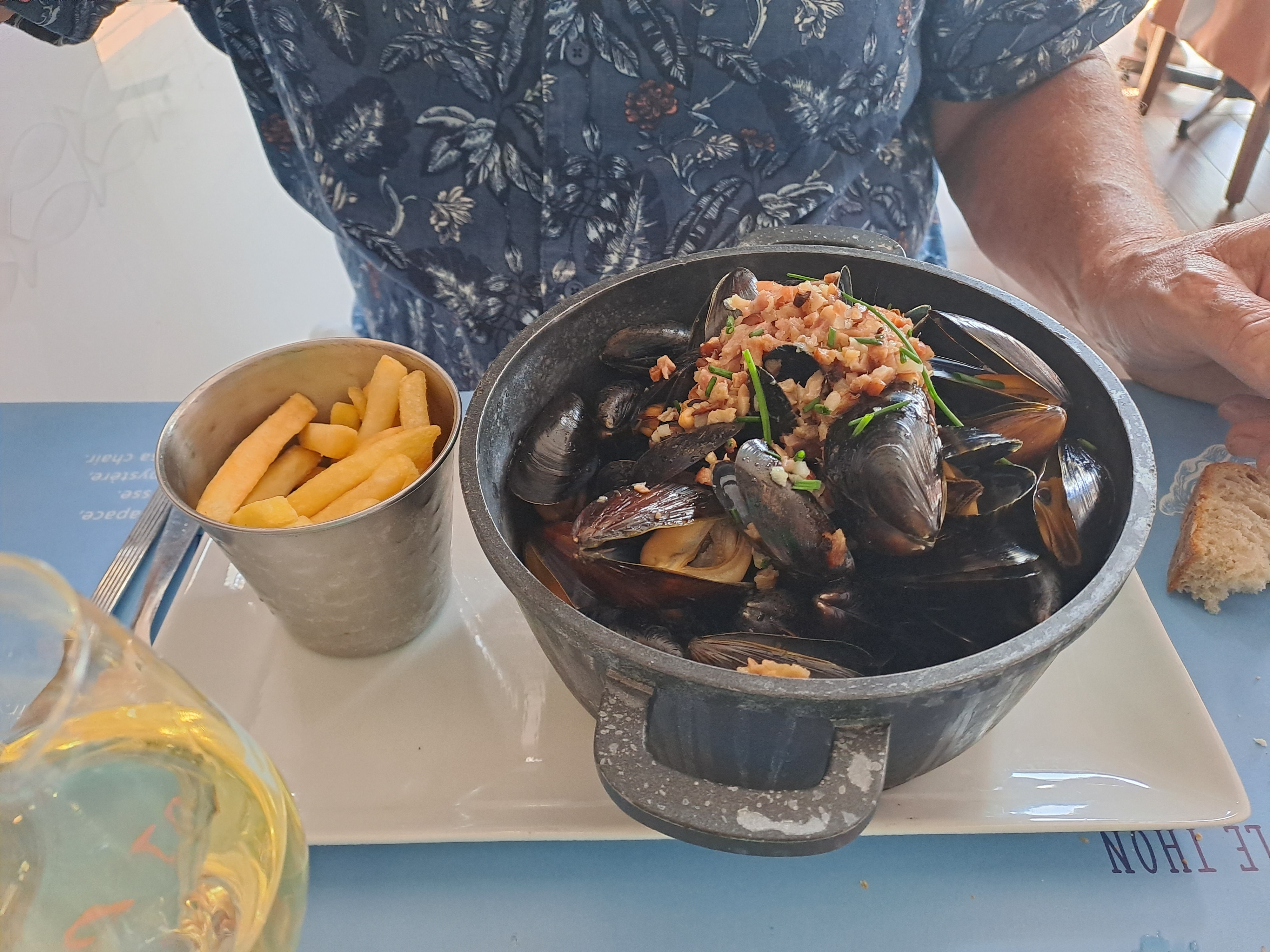 Désolées de notre repas, pas de roquefort, donc des moules marinières, sans aucun goût, comme cuites à la vapeur, les échalottes non pas dans le jus de cuisson mais au dessus des moules.