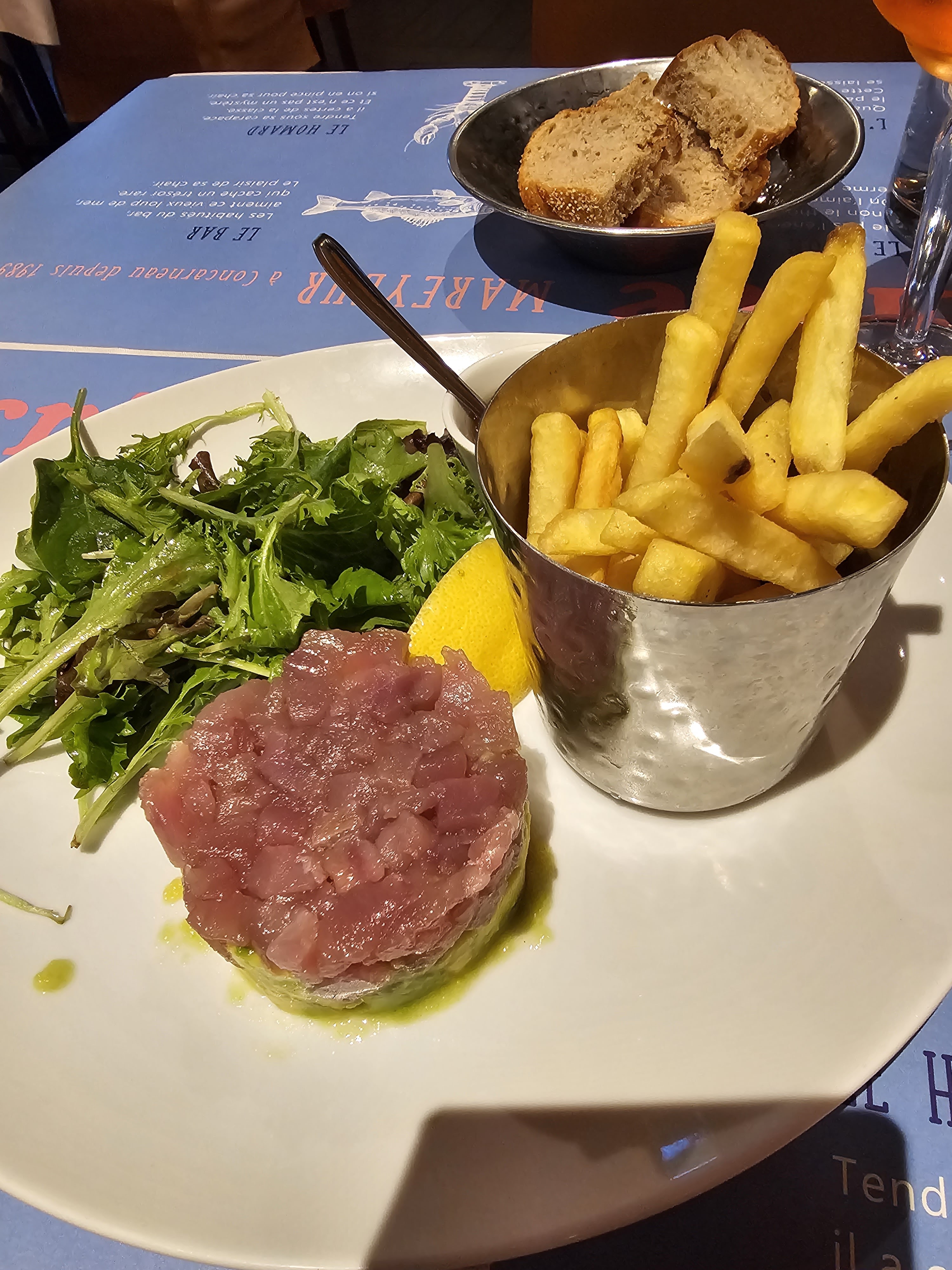 Très moyen, trop cher pour ce que c’est . Étant donné les tarifs, le minimum serait de servir des desserts fait maison. Accompagnement trop léger et mal cuisiné, frites surgelées et fond de paquet. En revanche Le steak de thon est très bon, seule satisfaction du repas avec le pain chaud qui a excellent goût. À noter également la fluidité du service et la gentillesse des serveurs.