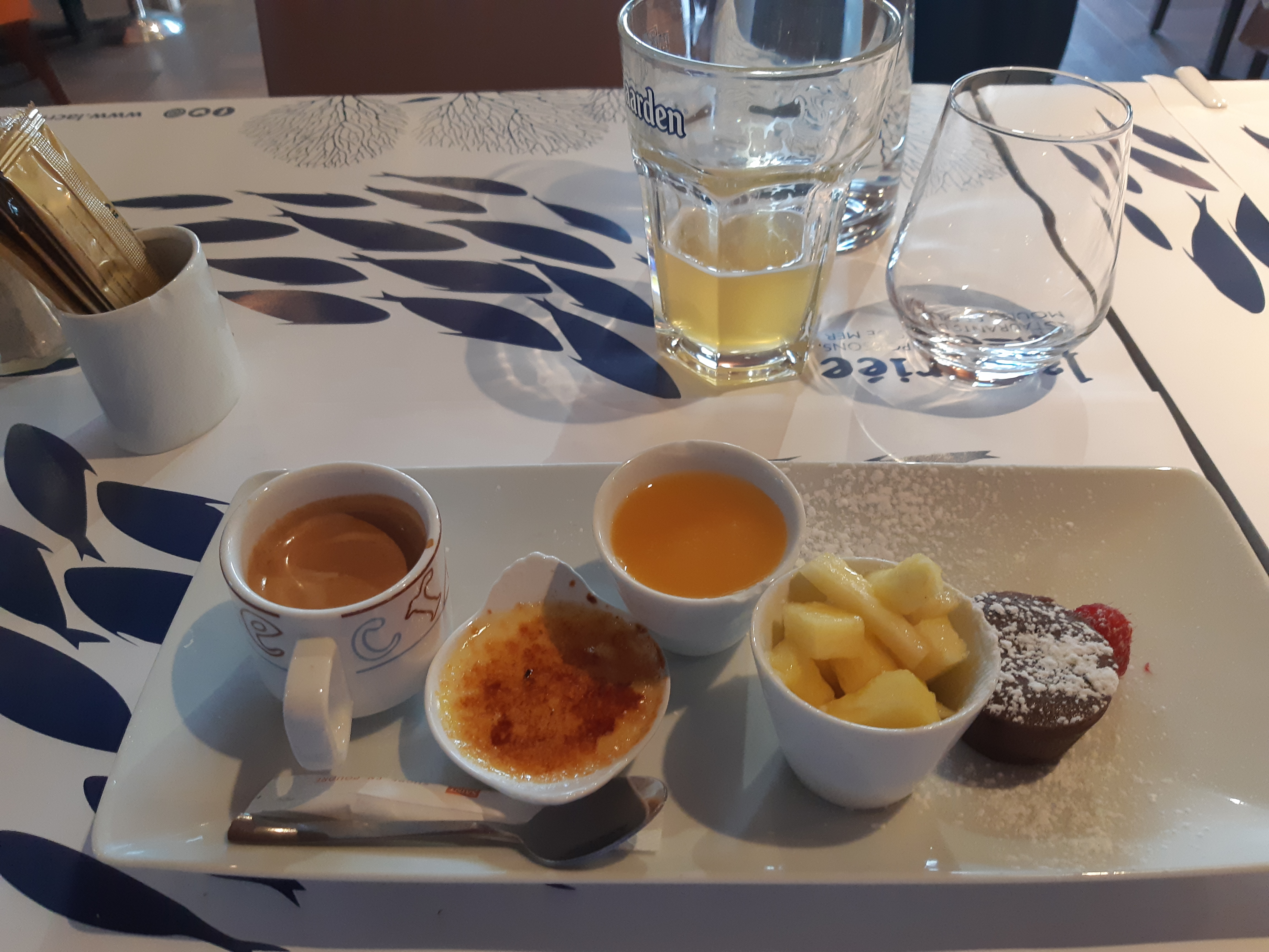 Déjeuner hier 13h .. apéritif oublié.obligė de me déranger..plus de choucroute de mer... pourtant au menu... plus de grand marnier pour crêpes a la carte...