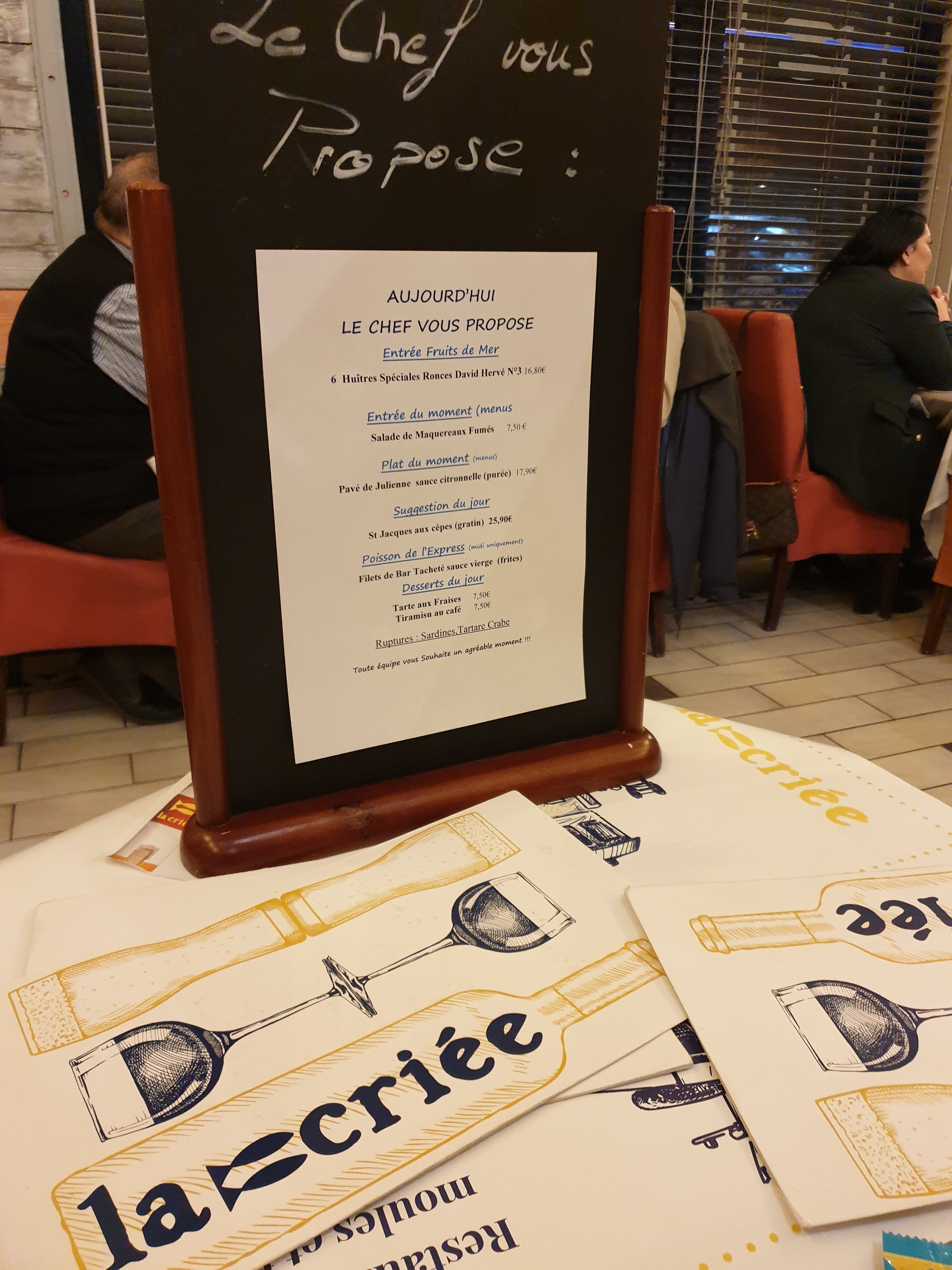 Nous avons dîner hier soir, accueil satisfaisant le serveur était à l'écoute et très souriant il va certainement se reconnaître. Assiette océane pour moi c'était un délice mais oui c'est dommage qu'il y est un mais les frites par pitié changer ça au plus vite franchement j'ai manger mieux j'aurais préféré une patate à l'eau pour vous dire afin d'améliorer cette belle assiette je reviendrai bien-sûr alors j'espère que les frites seront meilleures . Et j'aurais encore une petite réclamation le Fisher and chips trop gras la pâte est trop épaisse encore dommage le poisson à l'intérieur é était succulent voilà sans rancune c'était bon quand même. Hé vais finir sur une note sympathique les sorbets bravo appréciable à bientôt la criée 😉