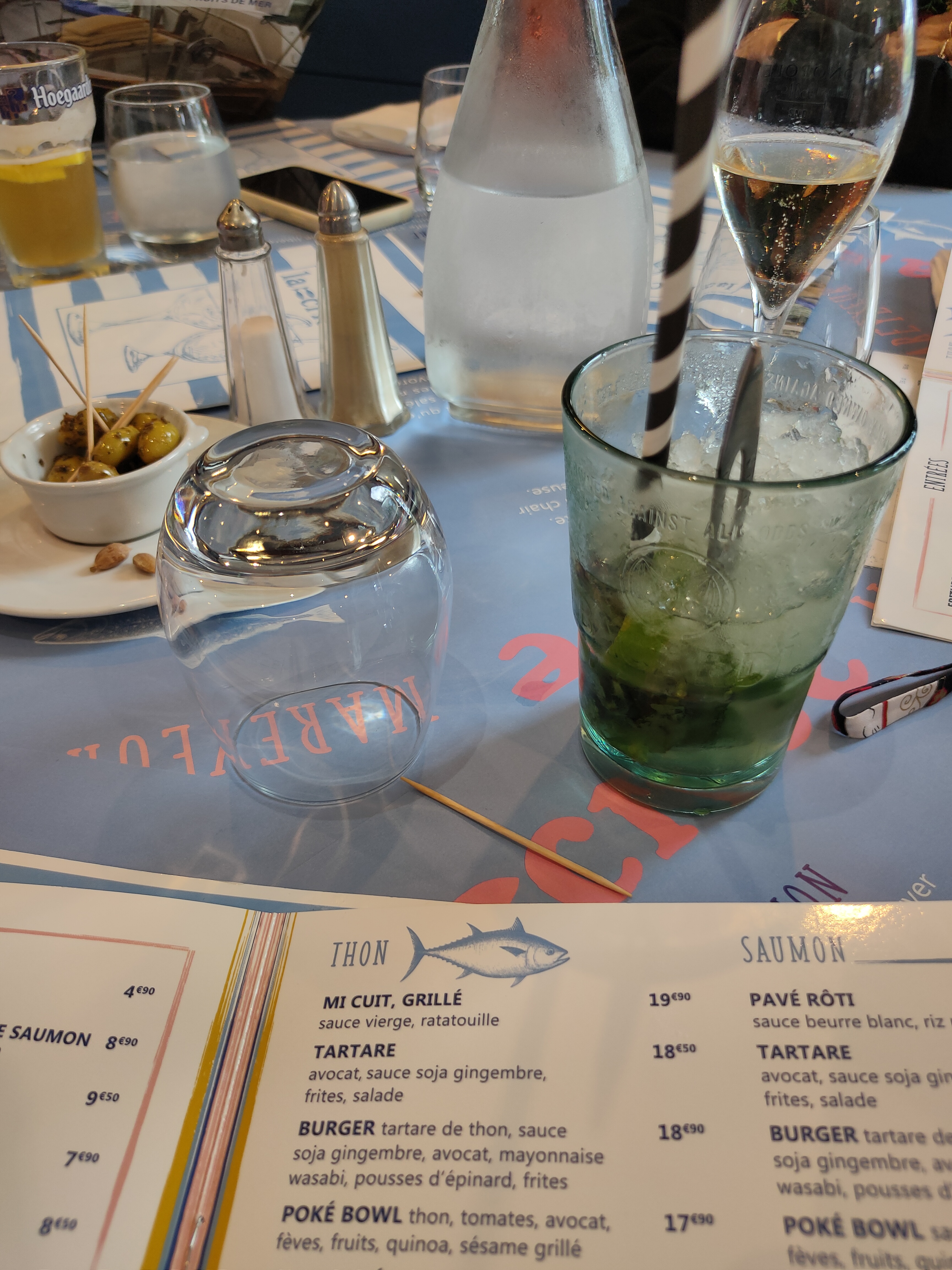 Le lieu est agréable mais c'est un peu Cher notamment le cocktail sans alcool 6€ pour un simple jus mixé ! La soupe de Poisson nous a été servie rapidement mais tiède. Le serveur est poli et réactif