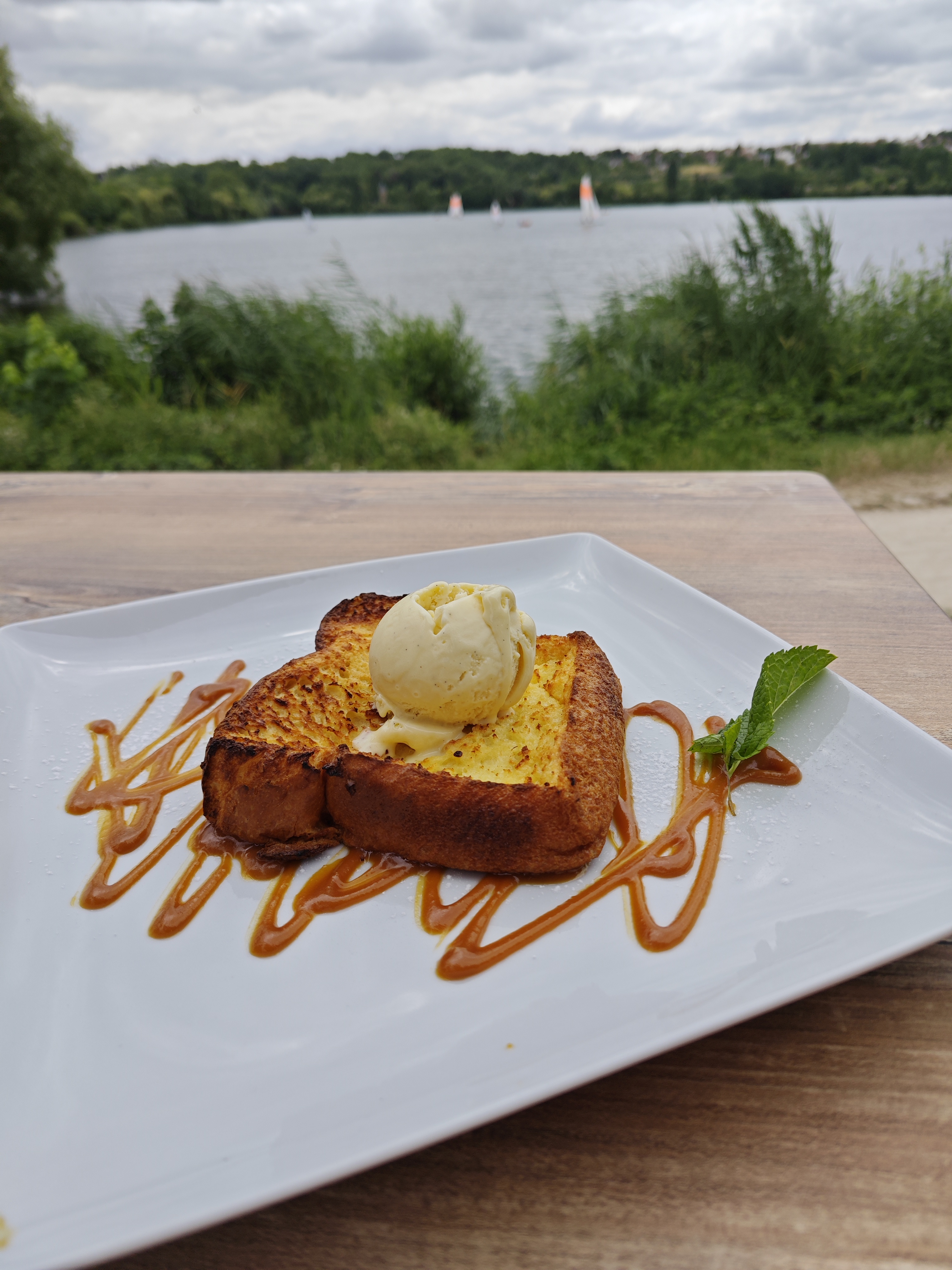 Une très belle terrasse qui donne une vue sur le lac. On a vraiment pas l'impression d'être en banlieue parisienne. Un accueil très sympa et des serveuses tellement aimable. Pour le repas, le bar était très bien, mais déçu par l'encornet trop cuit, sec et un goût trop prononcé de brûlé , je pense à cause du mode de cuisson. Je vous recommande.