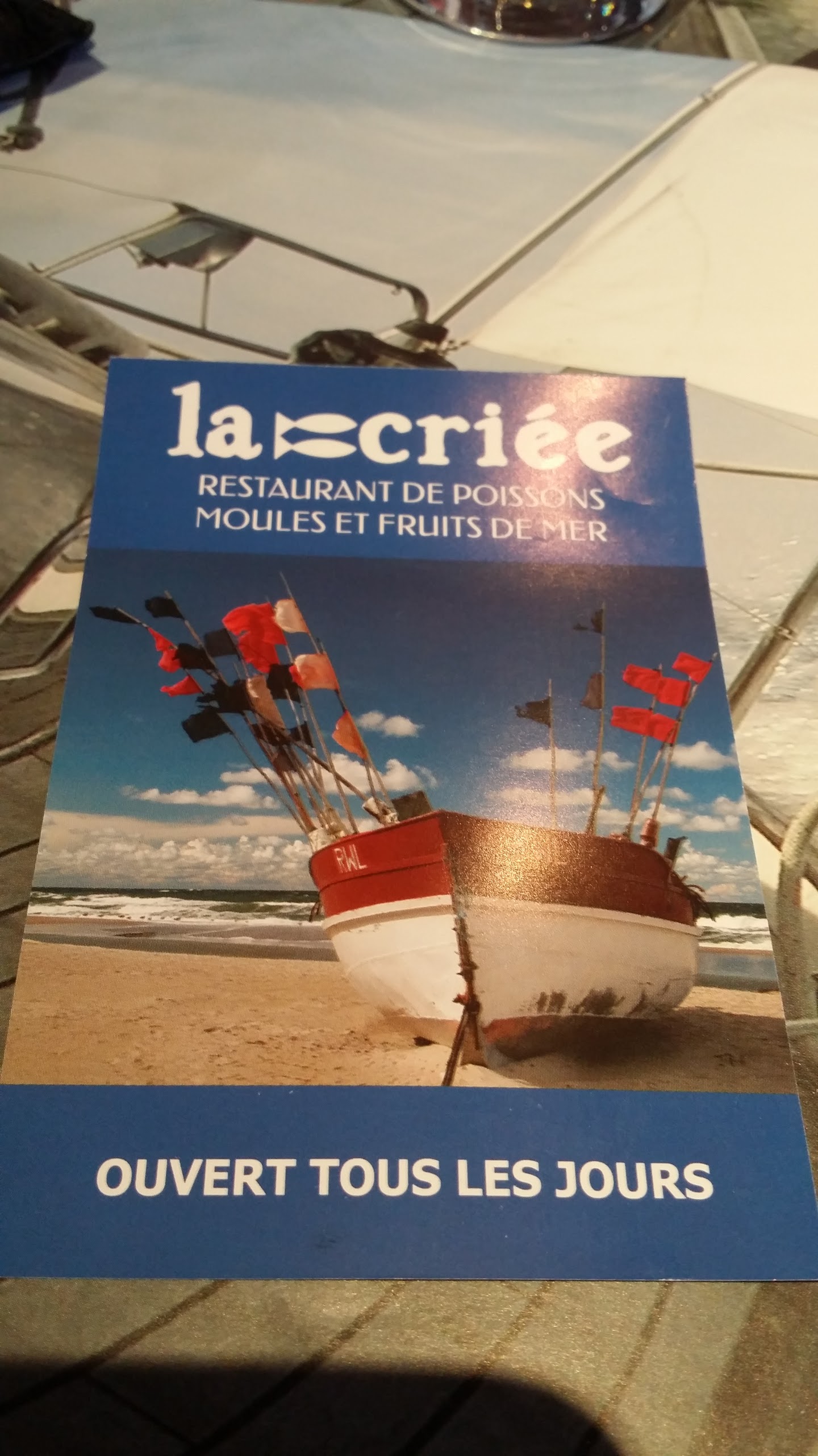 Cela faisait quelques temps que je n étais venue manger à la criée, accueil agréable, même sympathique, cependant grosse déception des moules trop cuites, celles qui l étaient moins du chewing-gum, aucun goût, nous l avons signalé, le serveur sympathique nous a répondu que hier elles étaient bonnes, a proposé de nous en donner une portion supplémentaires, mais nous étions trop déçu deja du plat,sur la note aucun geste et même un verre de vin qui ne nous a jamais été servi, où j ai demandé le remboursement Dommage les restaurants de poissons sont rares, soignez vous clients !
