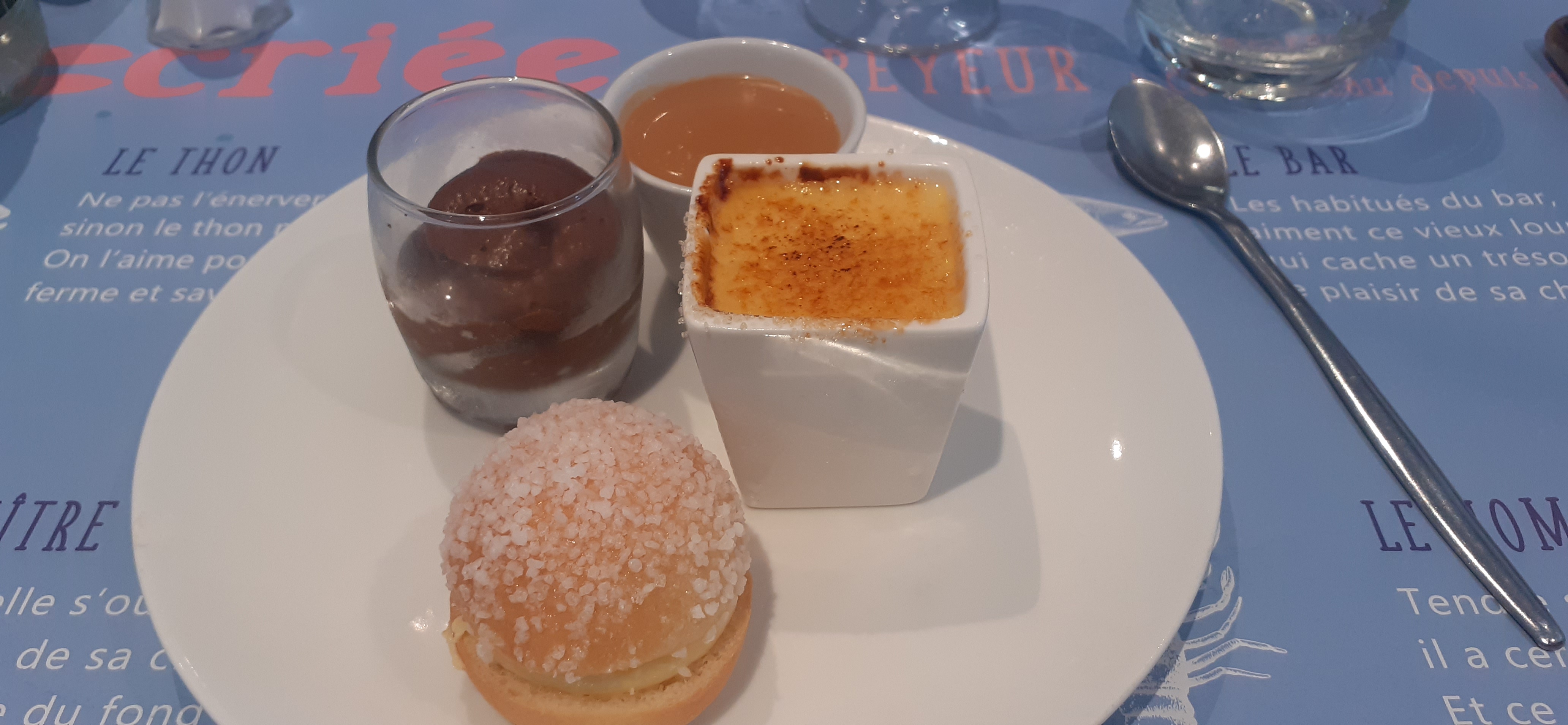 Bon rapport qualité prix: huîtres, moules- frites, café gourmand. Pain et beurre salé en accompagnement excellents. Personnel accueillant et sympathique. Je recommande.