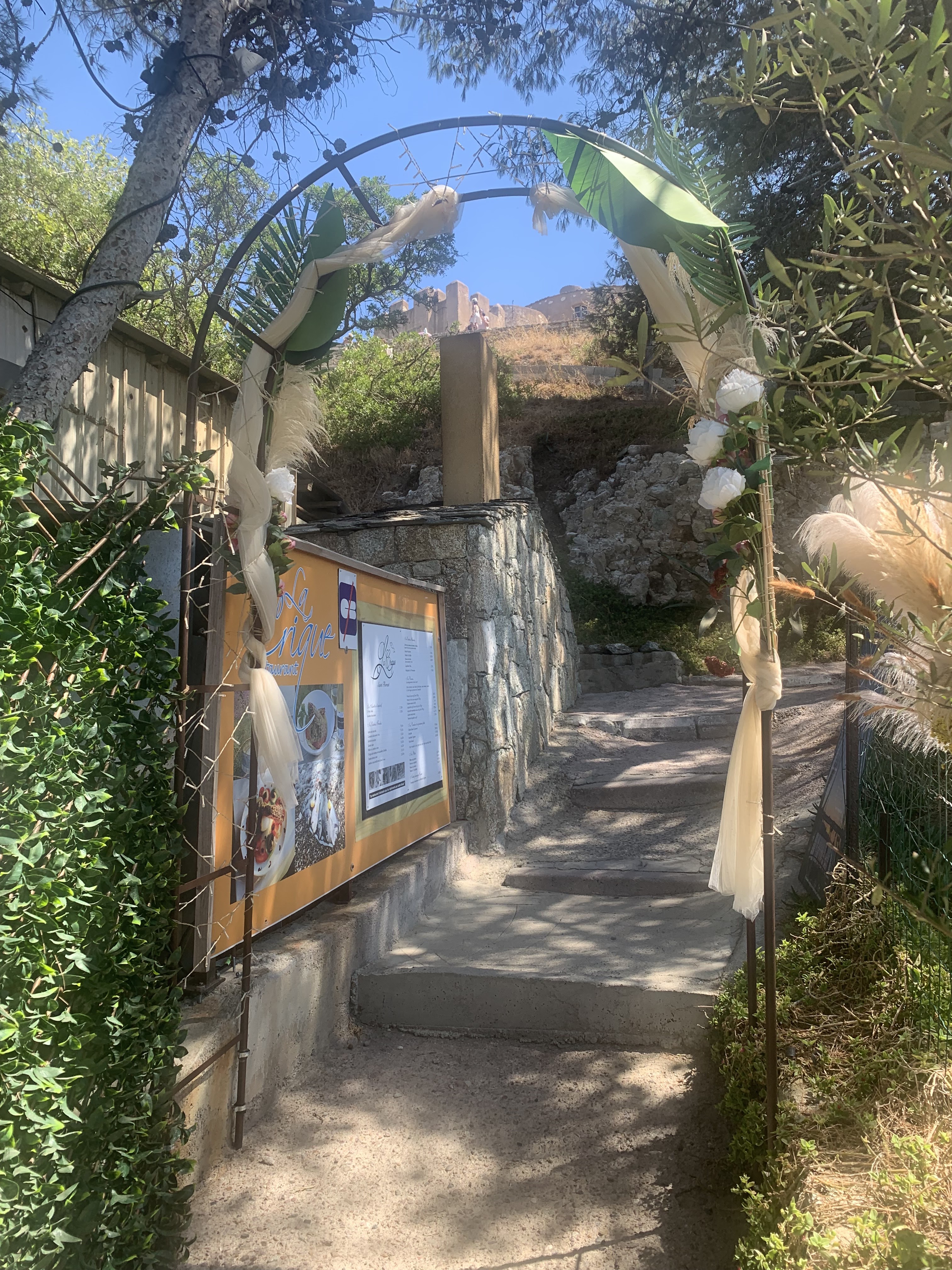 Notre plus grande déception de St Florent !! Le cadre vraiment magique, mais tout le reste est à revoir : Le service était à la hauteur d'un fast food, on a pris notre commande et avons été servis en l'espace de 10 minutes, on nous a pressés à faire notre choix, ne nous laissant pas le temps d'apprécier le menu ni le cadre. Le serveur était incapable d'expliquer sa carte. Concernant les assiettes, l'espadon était bon, par contre ni allez pas pour manger des pâtes, vous ferez bien mieux chez vous avec un paquet de panzani et de la bridelice. Summum de ce repas expéditif, notre hôte, sans doute la gérante de l'établissement ne nous même pas adressé un regard lors du règlement (en liquides, attention ils ne prennent pas la CB). Bref, les 80€ de ce repas pour deux, ont été engoutis aussi vite que ces pâtes au roquefort immondes. Je vous conseille de privilégier d'autres professionnels de la restauration qui vous feront passer un agréable moment.