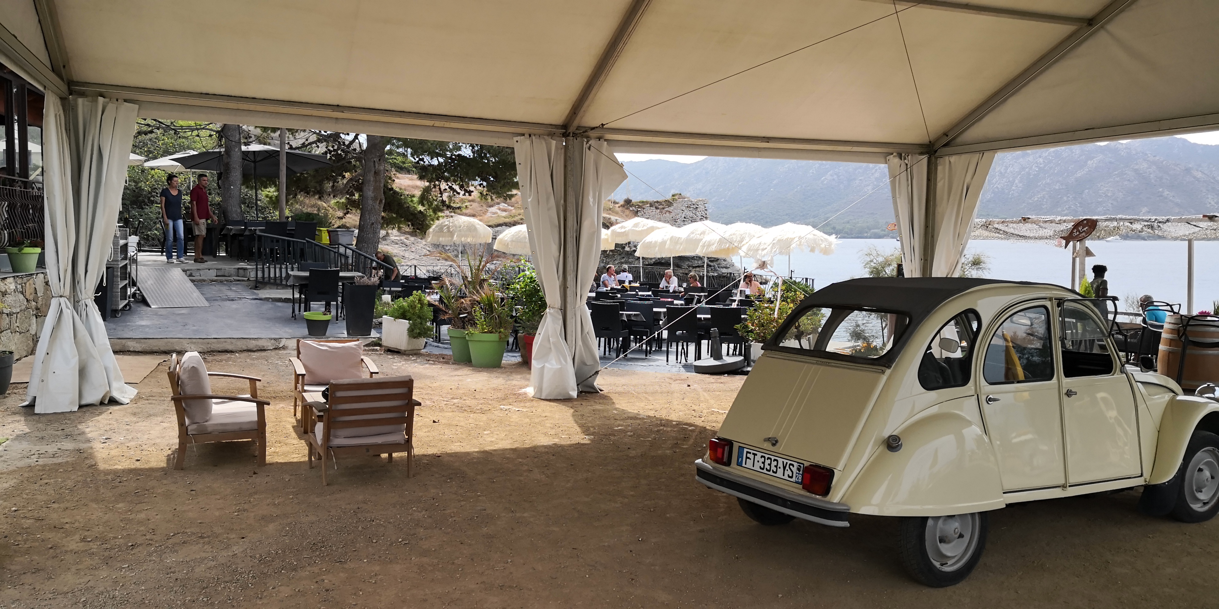 Très bel endroit dans un cadre magnifique, pour y admirer un coucher de soleil exceptionnel. La cuisine est de bon niveau et raffinée. Mais les prix, un peu élevés, sont plus justifiés par la beauté du lieu que par la qualité des plats. Ce qui se comprend aisément et serait d’autant plus justifié si le service, bien que très correct, était plus chaleureux. Quoi que j’en dise, cet établissement est un incontournable de saint-florent, à ne surtout pas manquer.