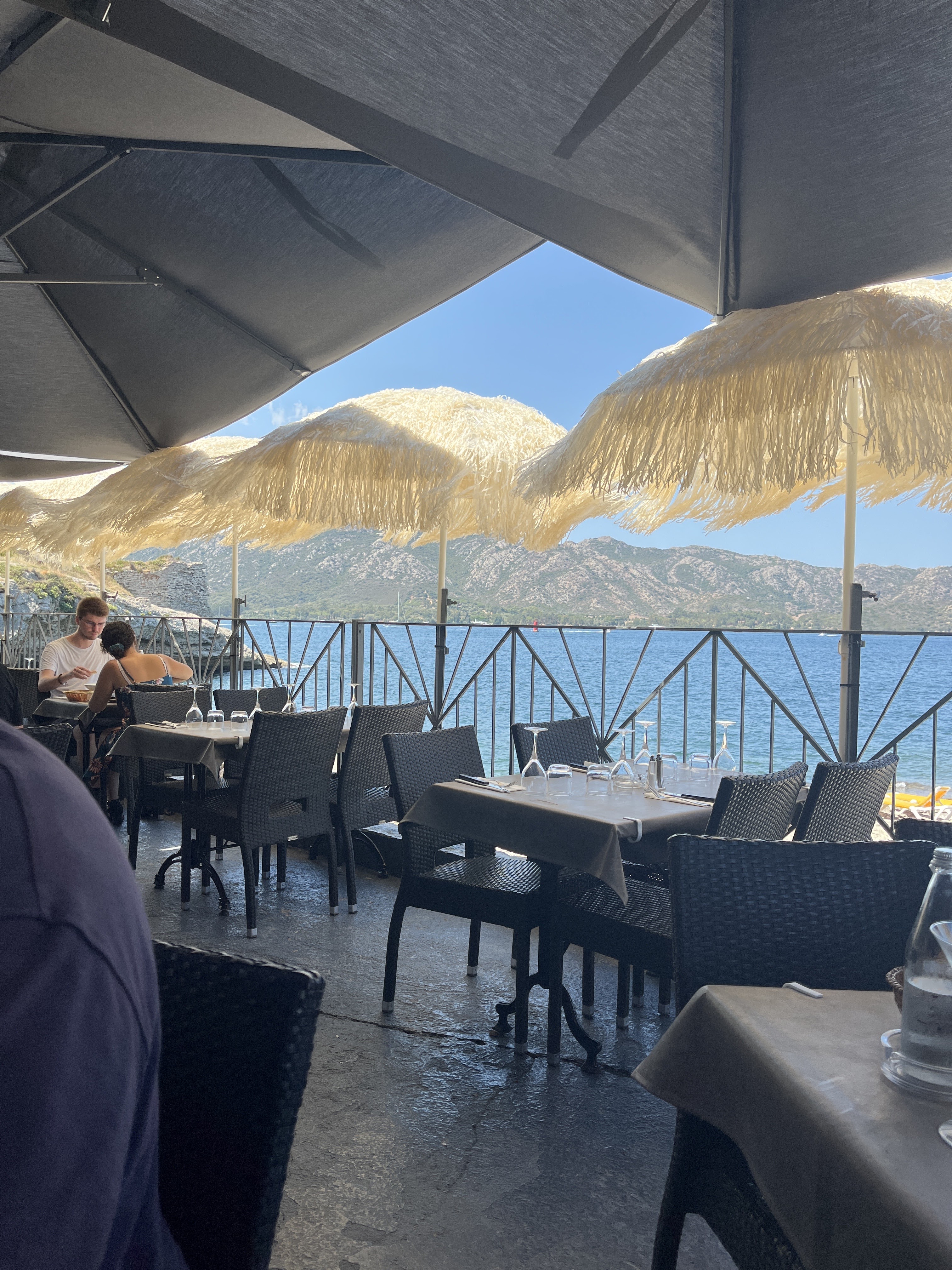 Très sincèrement endroit au top ! Vue imprenable il n y a rien a redire vraiment. Venu une première fois suite à une visite de saint Florent et tombé sur cet endroit magnifique… nous avons pris un verre bord de mer à couper le souffle ! Revenue une 2 ème fois pour prendre un verre en premier temps dans ce superbe endroit et réservé une table pour manger et passer la soirée … sauf que là problème . Je demande à manger à une table précise cette personne me répond que c est déjà réservé ok pas de soucis ma question avez-vous une autre table vue mer ? Et la réponse ( elles sont toutes vue mer ) même dans le fond du restaurant peut-être !!! En plus de ça cette dame ( qui est à l encaissement) regarde ses réservations en soupirant haussant les yeux comme un ras le bol ! Peut-être à cause de tous ces touristes (comme nous)qui avons la même réclamation du bord de mer ! Vraiment dommage de recevoir des clients sans proposer d alternative sur un éventuel 2 eme service ou un autre emplacement qui aurait pu convenir à notre demande peut exigeante . Sur ceux votre endroit reste vraiment très jolie et reposant et envoûtant les serveurs que nous avons croisés très accueillant. Je ne dénigre en aucun cas le restaurant ni le site loin de là juste une personne qui peut faire changer beaucoup de choses … L endroit reste magnifique !