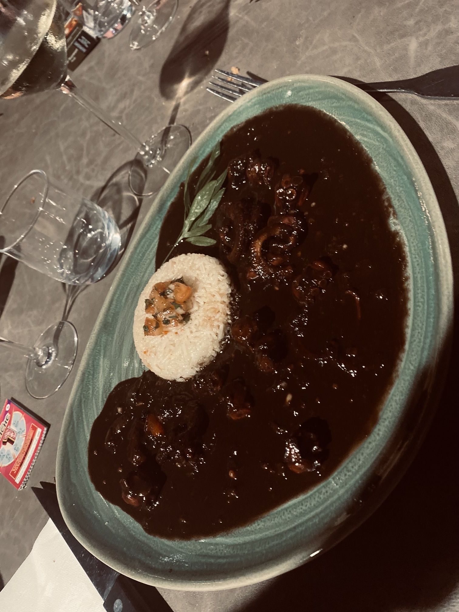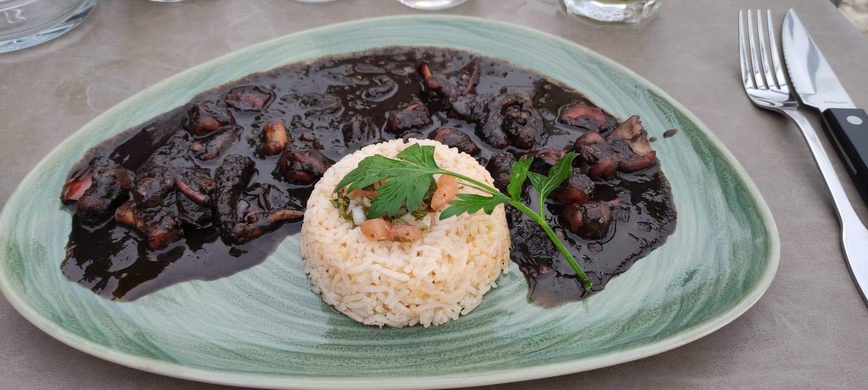 Bon repas (brochettes d’agneau délicieuses et tendres et poulpe à l’encre de sèche délicieux également) bravo au cuisinier Cadre très agréable Petit bémol le reste à revoir
