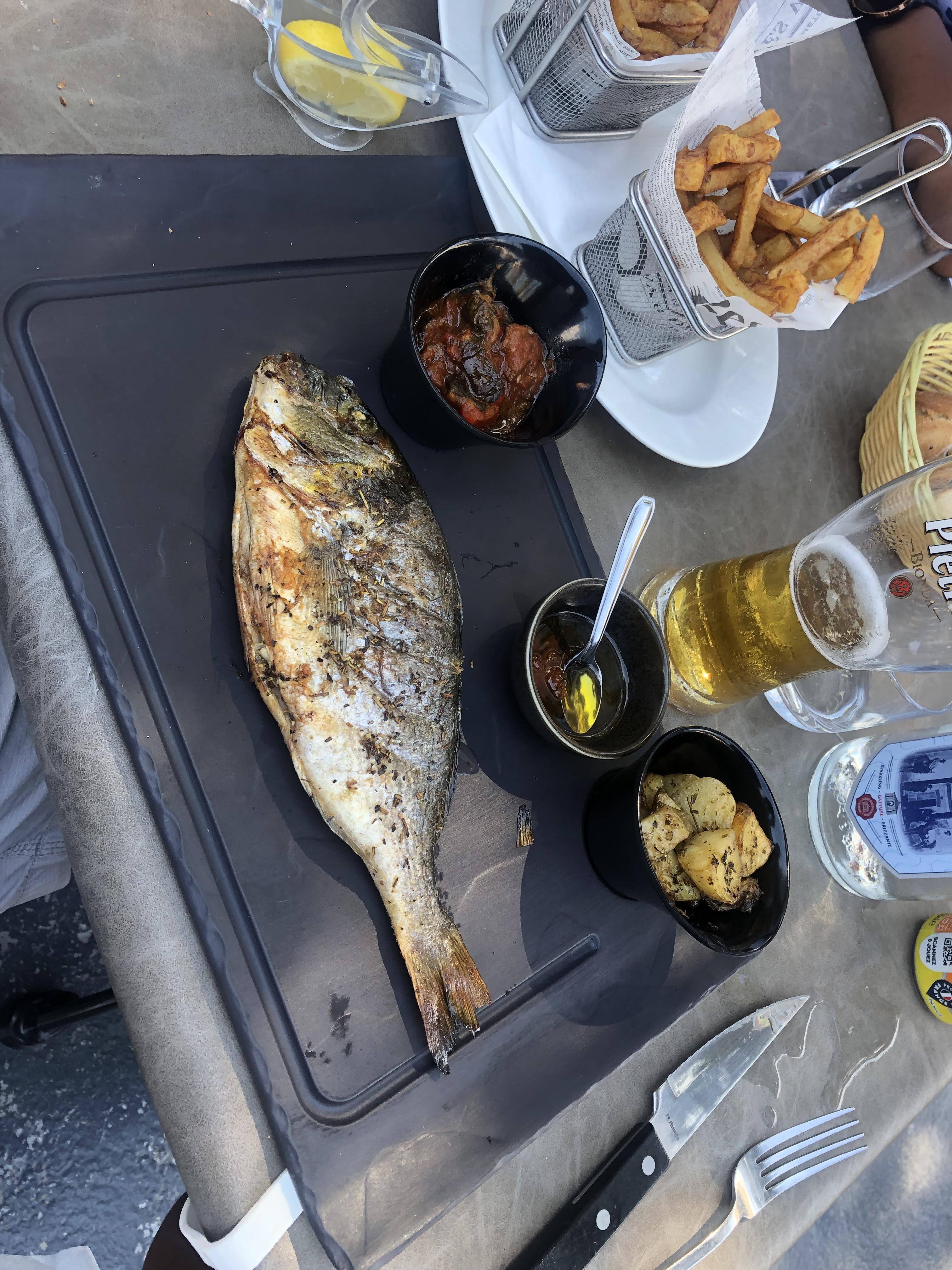 Assiettes poisson très bonne mais malheureusement servit en même temps que l apéro et notre dessert on l attend toujours 😏