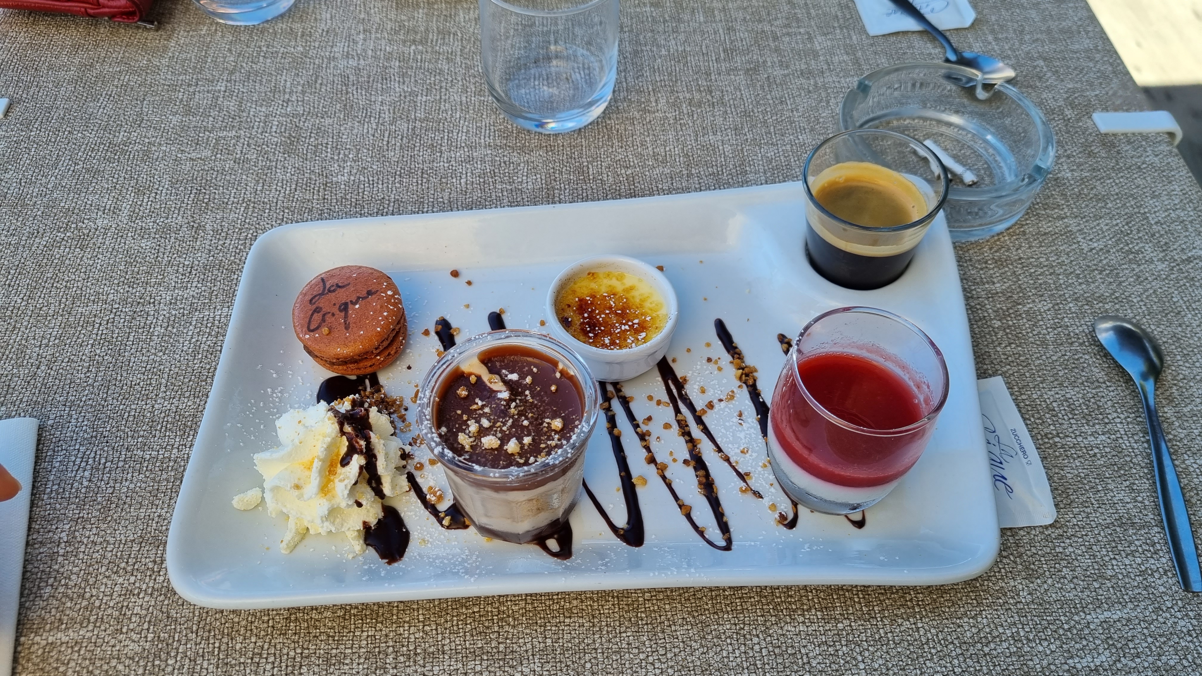 Conseillés par les amis chez qui ont logeait, nous avons mangé à la crique un soir. Arrivés vers 19h30, nous avons pu profiter du coucher de soleil dans ce lieu magnifique. De l'entrée au dessert, sur les suggestions du serveur, nous nous sommes régalés.