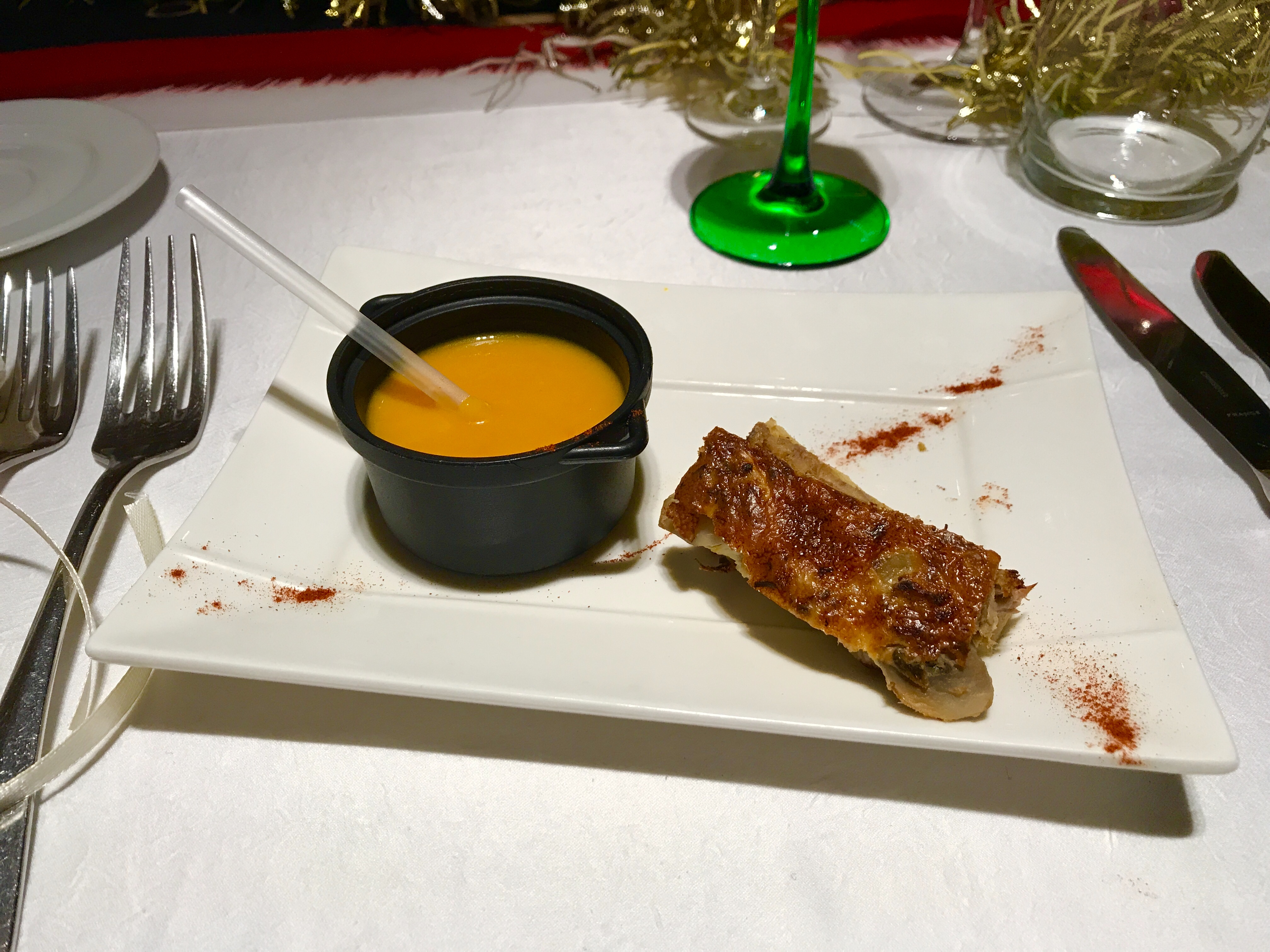 Cette soirée sanglier à la broche une tuerie et cette tarte flambée bisque de homard saumon il faut la mettre à la carte