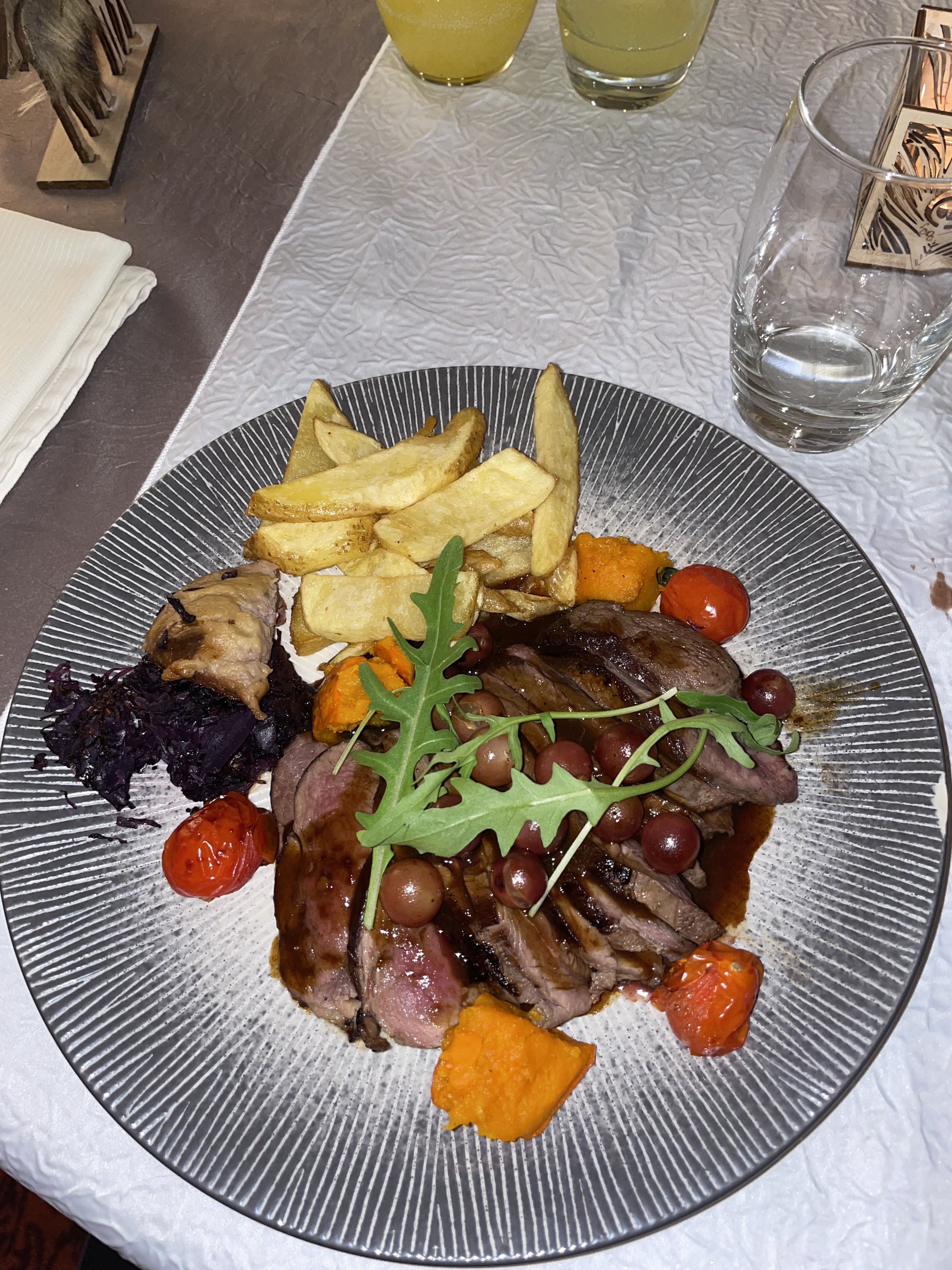 Magret de canard excellent très bon vins, service adorable et cadre chaleureux 10/5