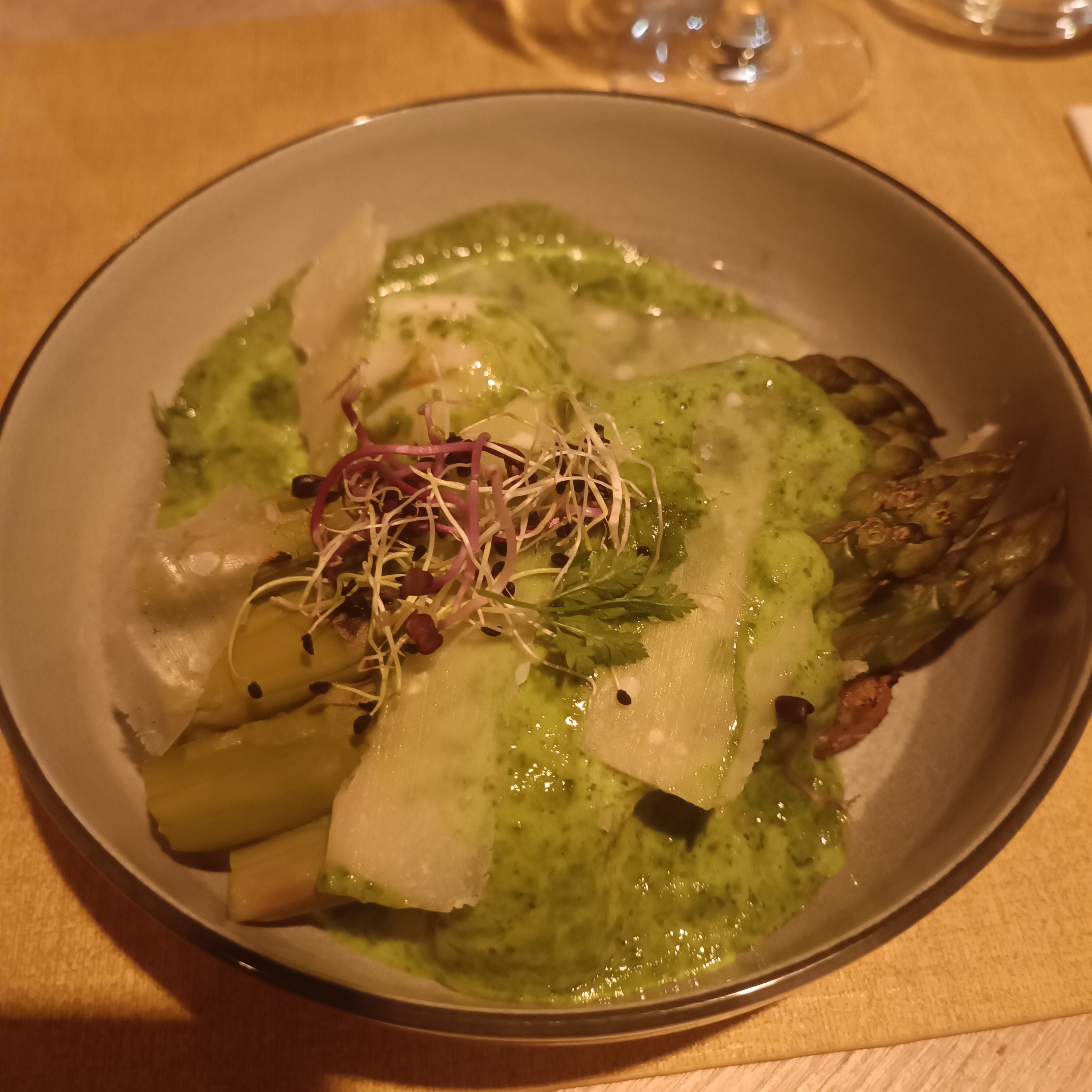 Nous étions deux et avons passé un excellent diner dans ce restaurant décontracté au service attentif et spontané et à la cuisine fine et originale. Les tables sont peut-être un peu trop petites mais on ne peut pas faire des miracles dans une charmante vieille bâtisse où l'espace est exigu!