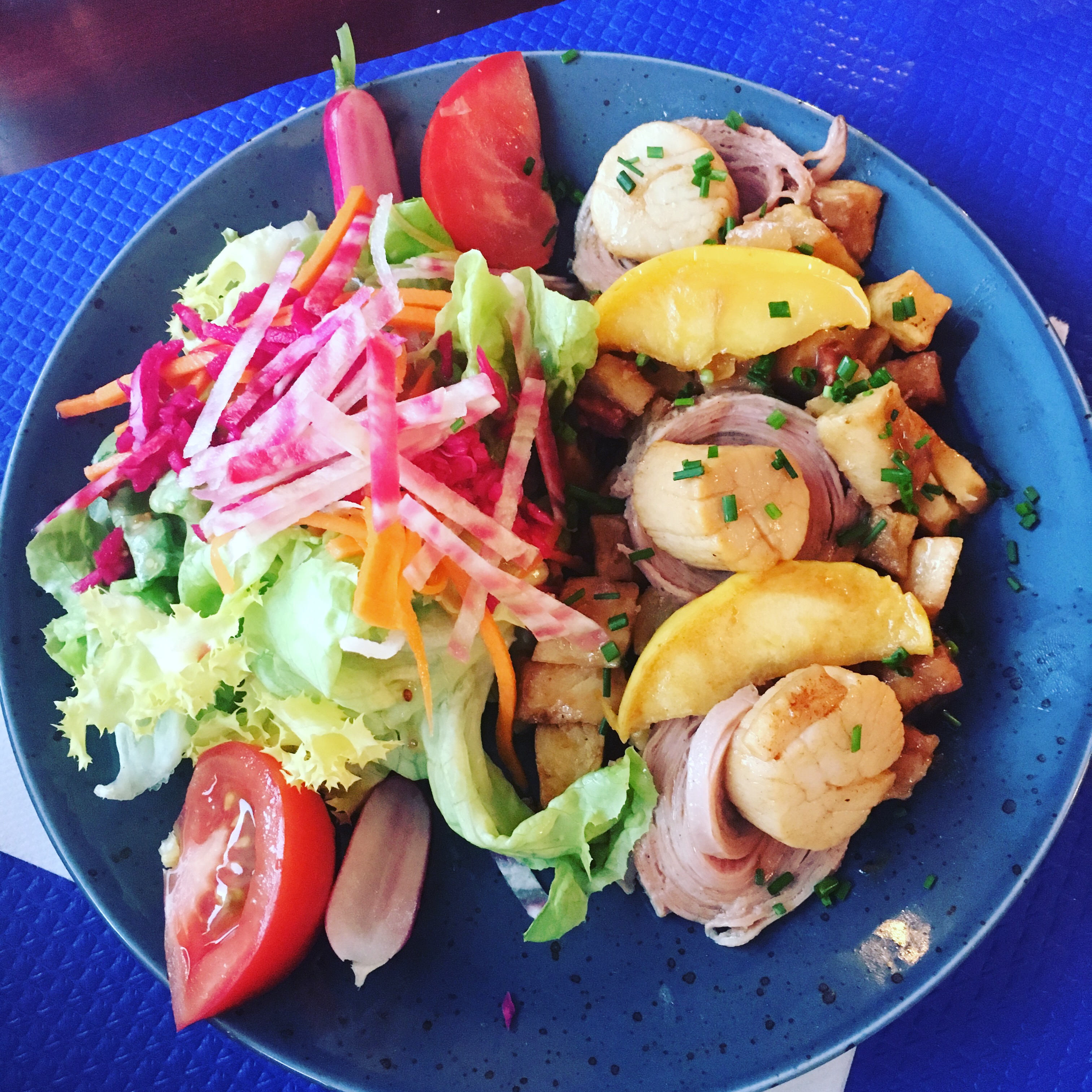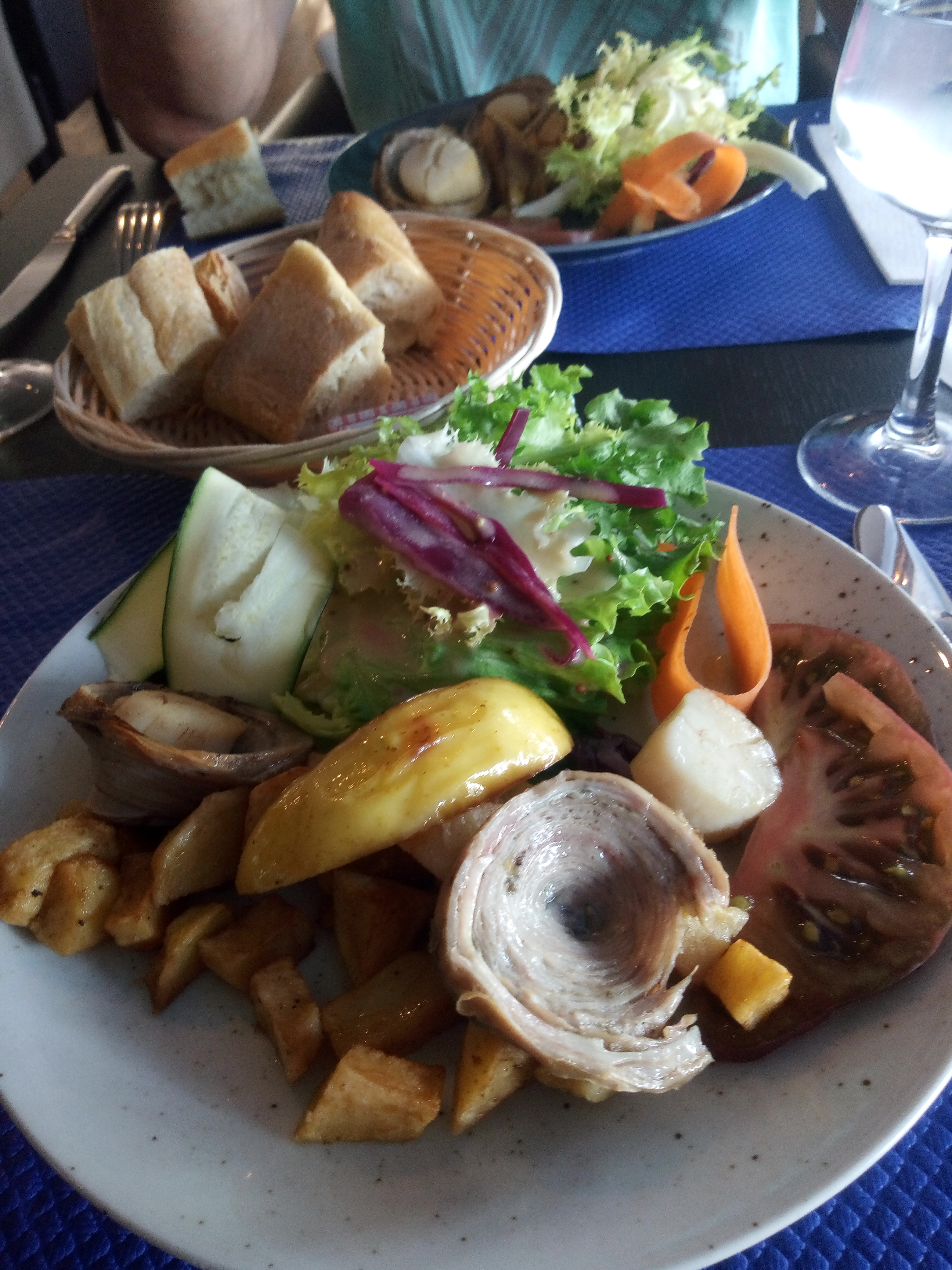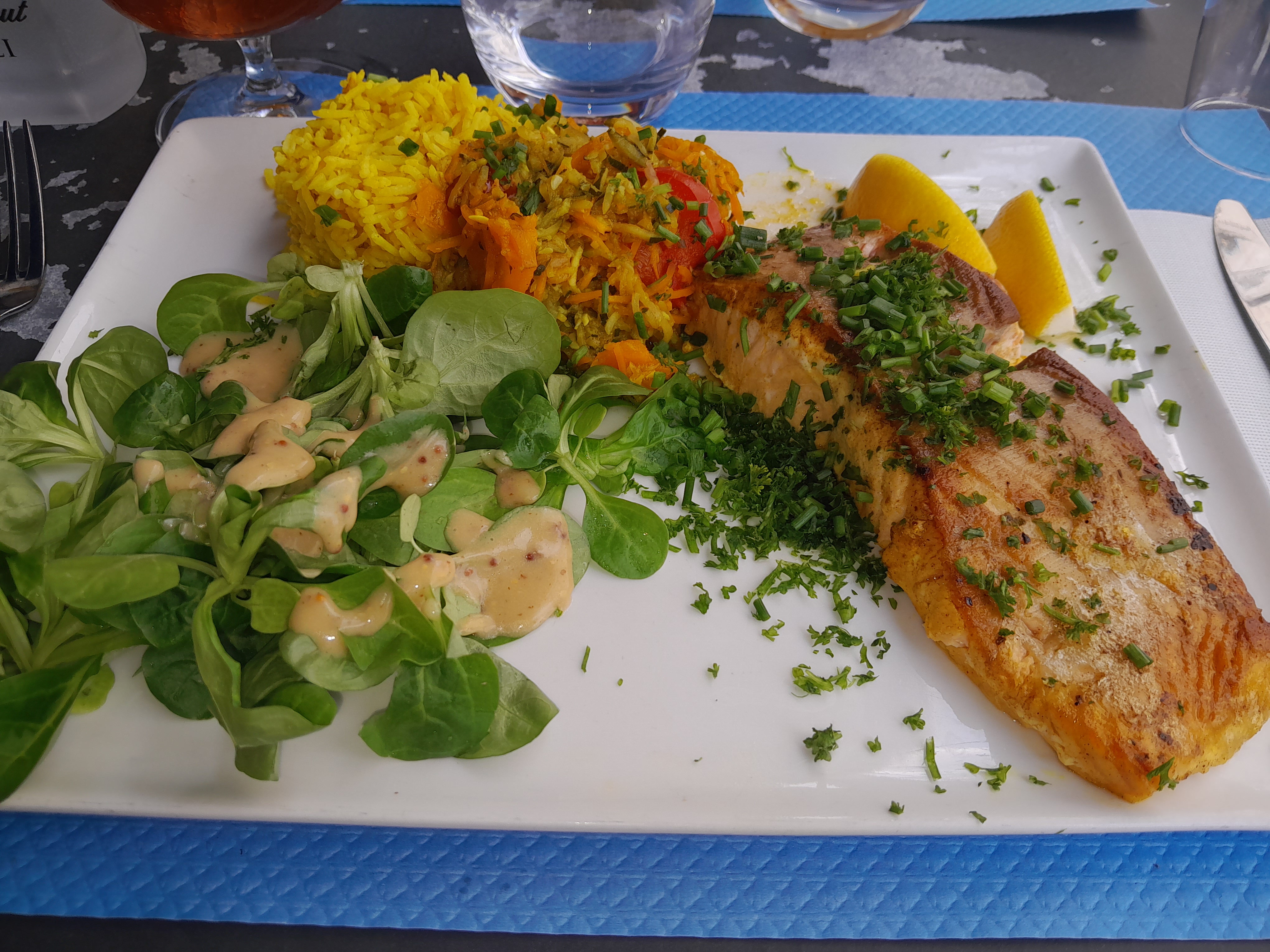 Très moyen. Légumes et riz réchauffés de la veille. Avons eu le pain à la fin du repas sur 2ème demande. Je ne retiendrai que la vue sur les bateaux.