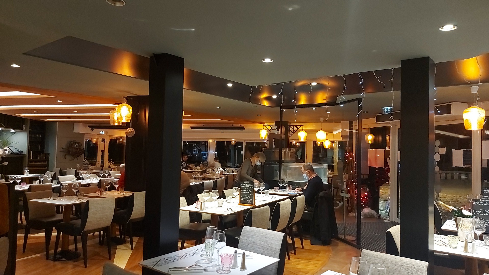 Nous y avons dîné la semaine dernière en intérieur avec vue mer, c'était vraiment impeccable. Très bien reçu, personnel aimable et servis rapidement. Nous étions 5 dont 3 enfants. Plateau de fruits de mer, St Pierre, Moules Frites et pièce de boeuf : un sans faute, tout était parfait. Nous reviendrons assurément.