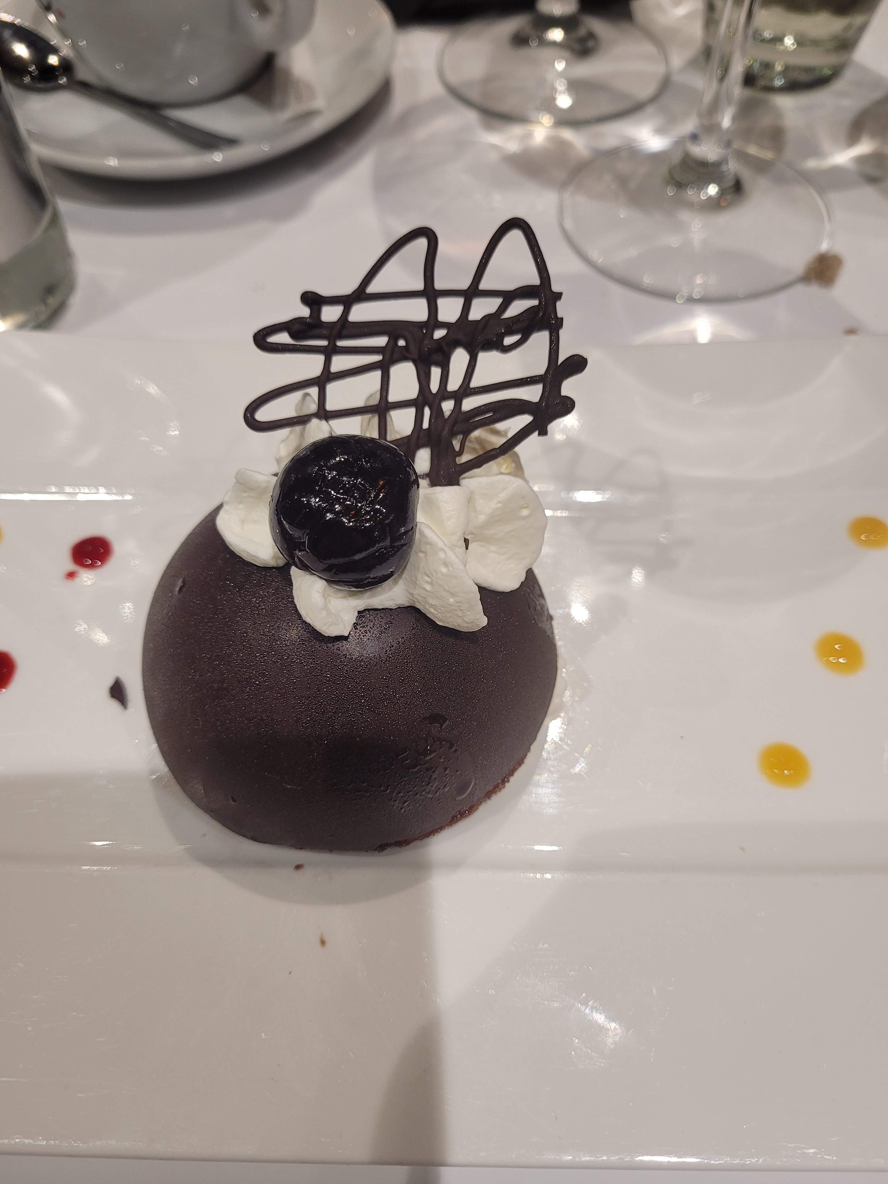 Cadre très agréable avec un personnel accueillant et très professionnel Repas excellent, risotto Saint-Jacques et lotte à l’huile de truffes, belle assiette, produit frais , je recommande Patronne au petit soin Nous reviendrons avec un immense plaisir