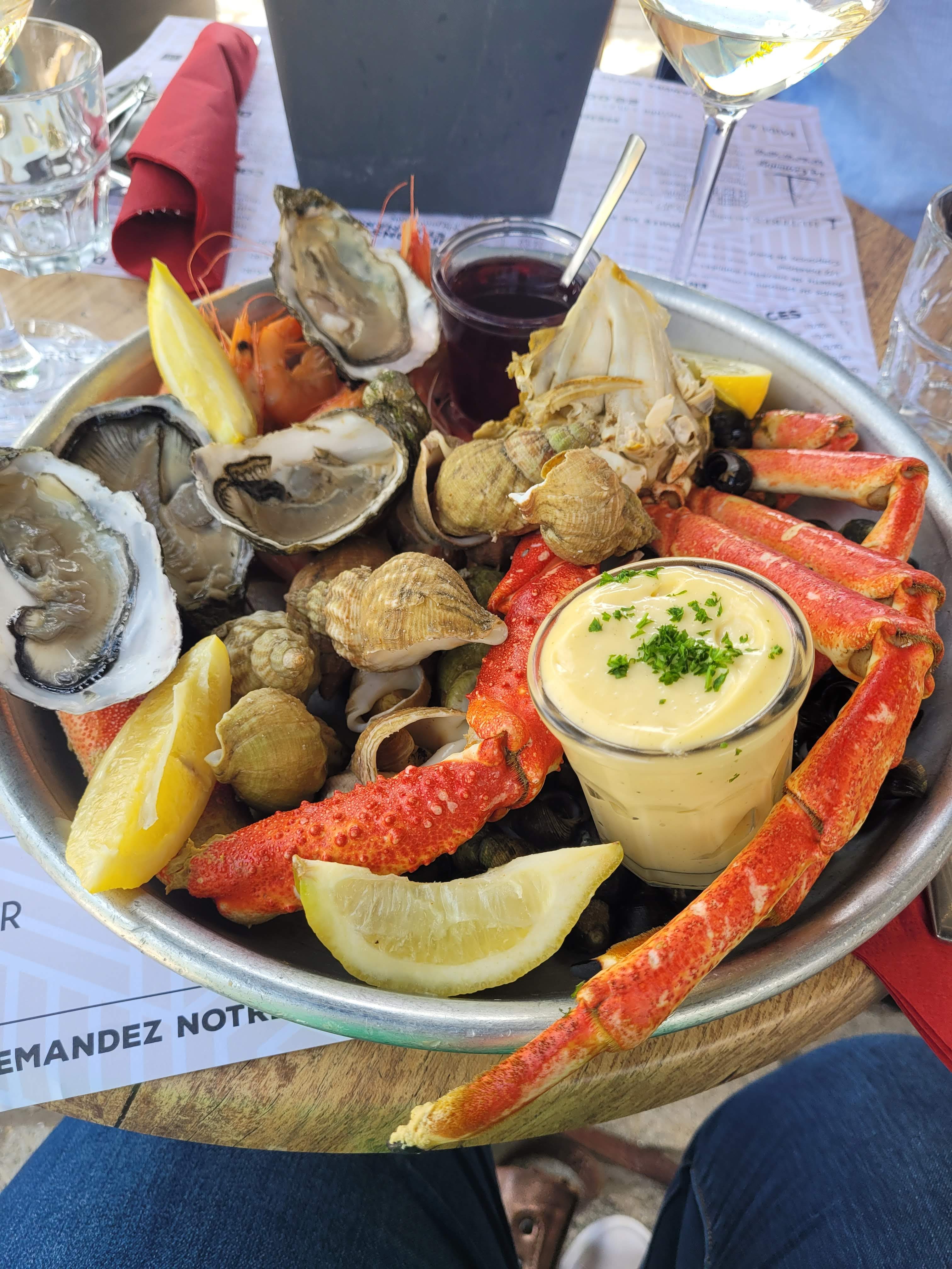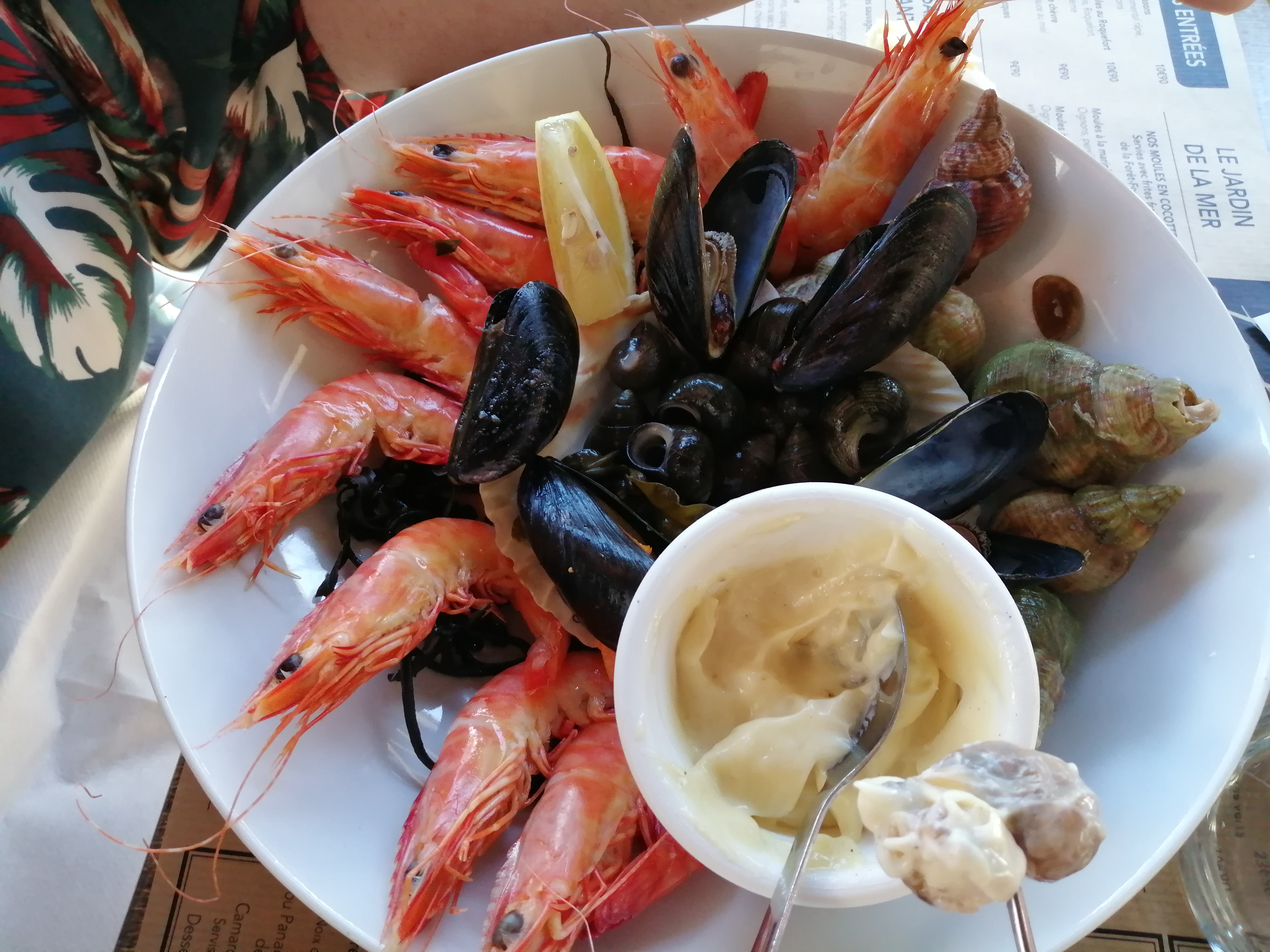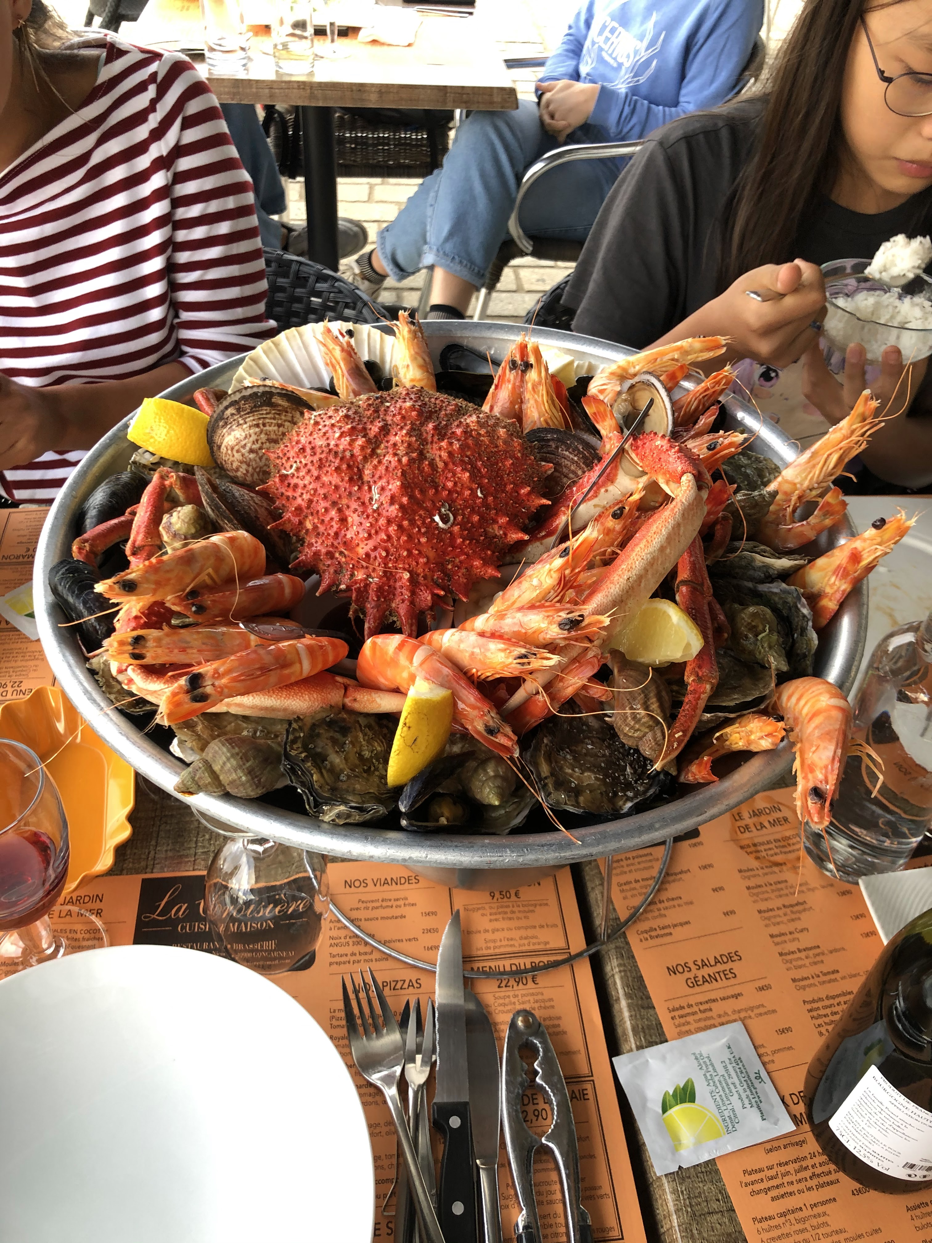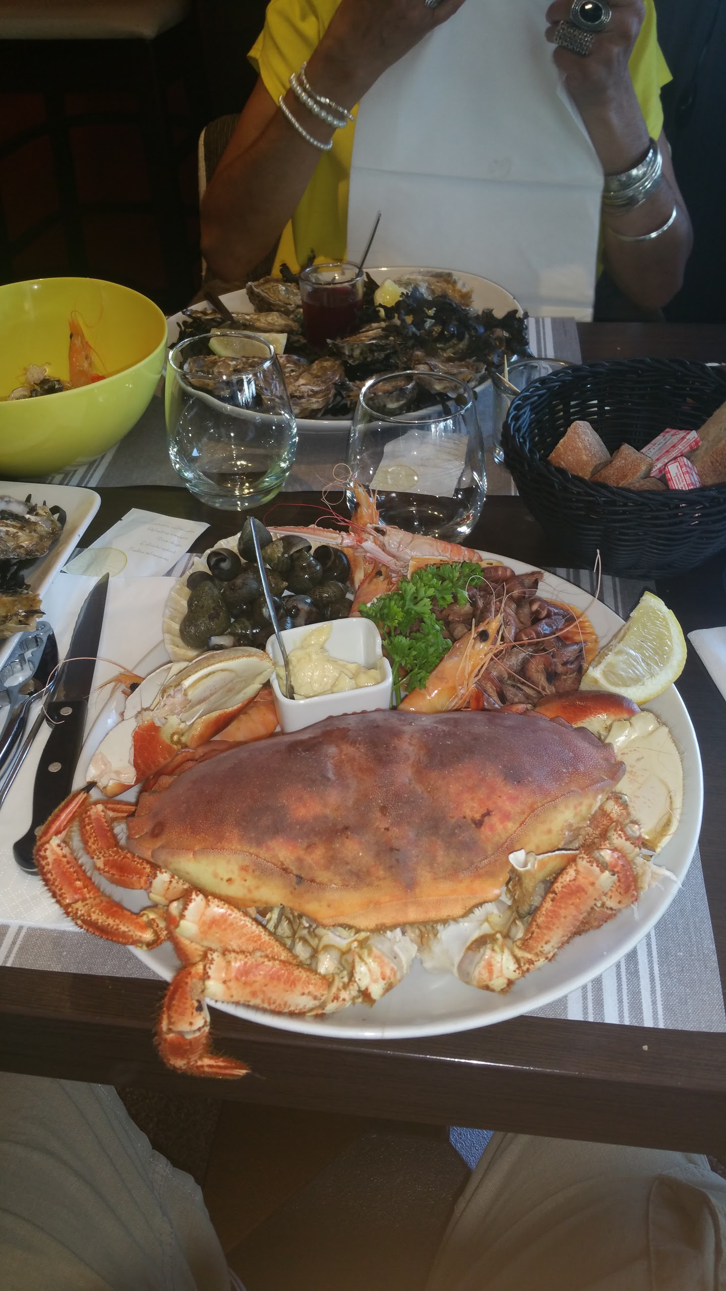 Nous avons commandé un plateau de fruits de mer. Au delà de sa fraîcheur... Les éléments constituant celui-ci étaient à même le plateau sans une couche de glace pour garantir le froid. Le plateau commandant étant normalement constitué d'un demi tourteau mais dans la réalité nous avons eu plutôt une petite demi voir le tiers. La région étant propice aux cidres nous avions convenu d'en déguster avec notre plat. Patatra pas de cidre pourtant indiqué sur la carte. Dommage car cela fait plusieurs années que lorsque nous nous rendons à Concarneau, c'était notre point de chute gastronomique. Ne vous y trompez pas, le nombre de personnes attendant d'accéder au restaurant révèle le potentiel ou bien le flot de touristes devant se sustenter.