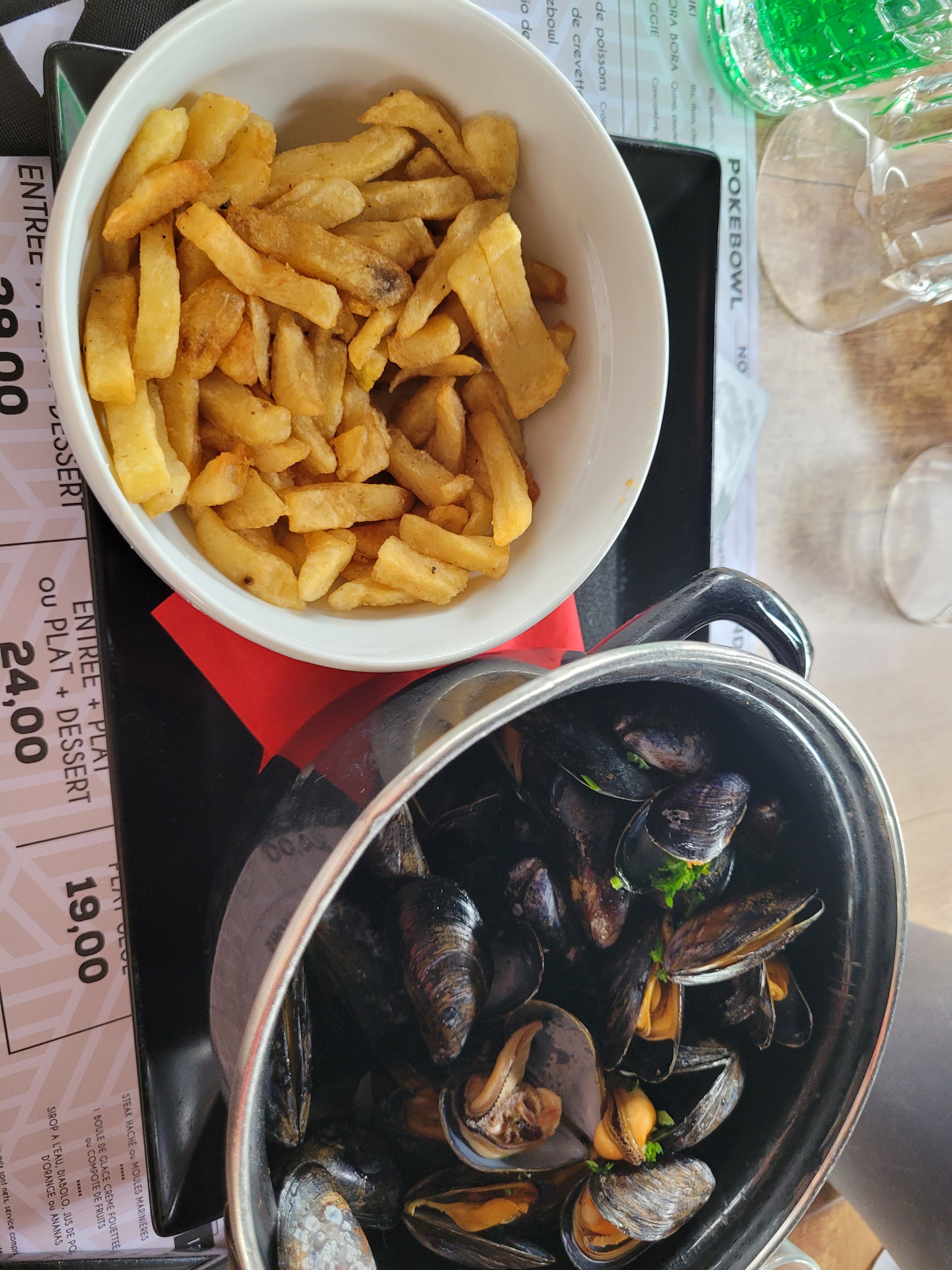 Très bonne moule frite marinière, cependant j'ai trouvé 2 cailloux dans mon plat. Le fish and chips était bon aussi mais il y avait des arrêtes.