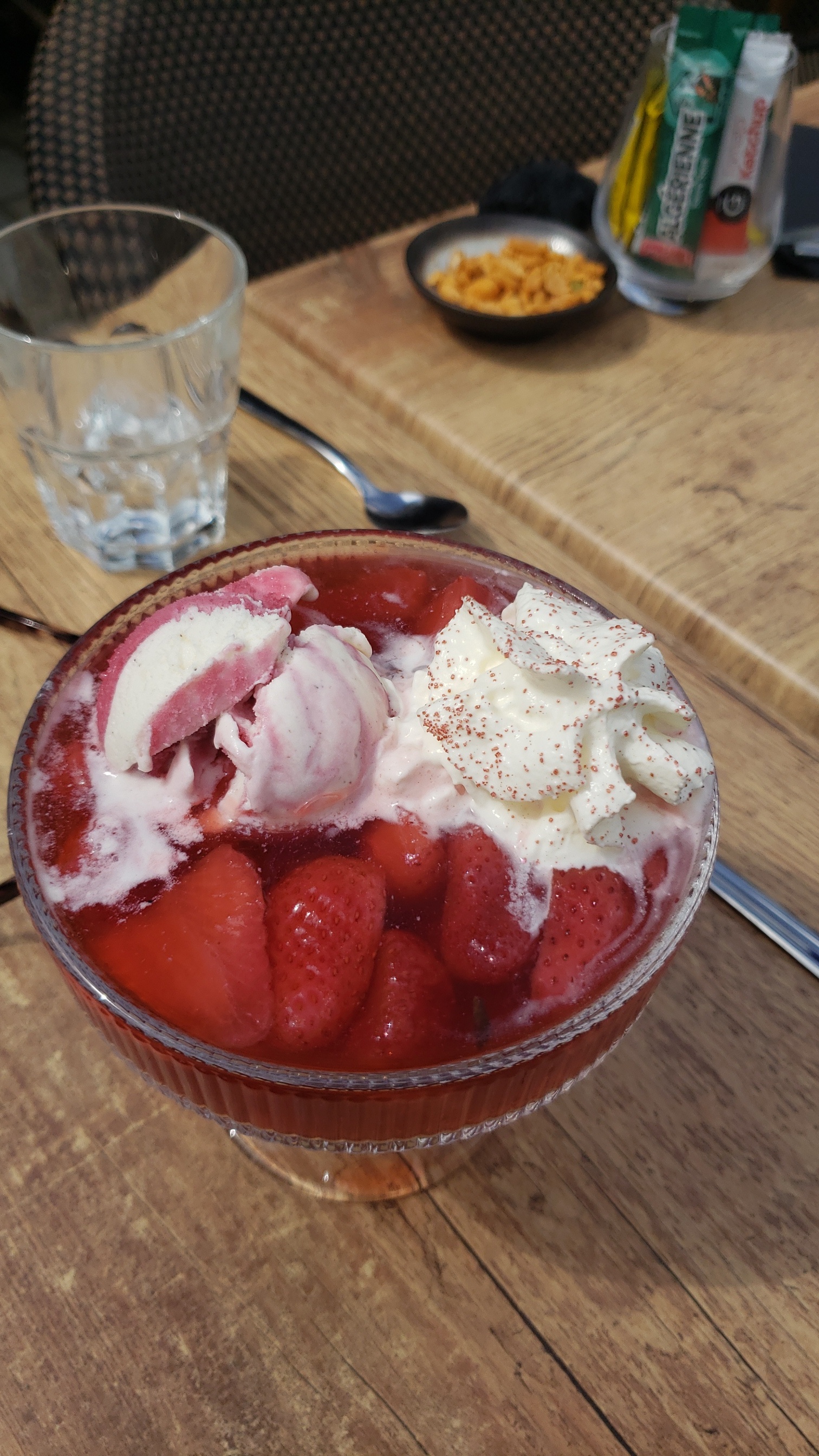 Très très déçue - n’étant pas de passage mais Concarnoise je ne pense pas y retourner - service long - le rapport qualité-prix est à revoir !! Une tarte aux fraises petite sans goût avec une pâte fade et une chantilly en bombe à plus de 8€ !! Évitez les moules … etc etc …