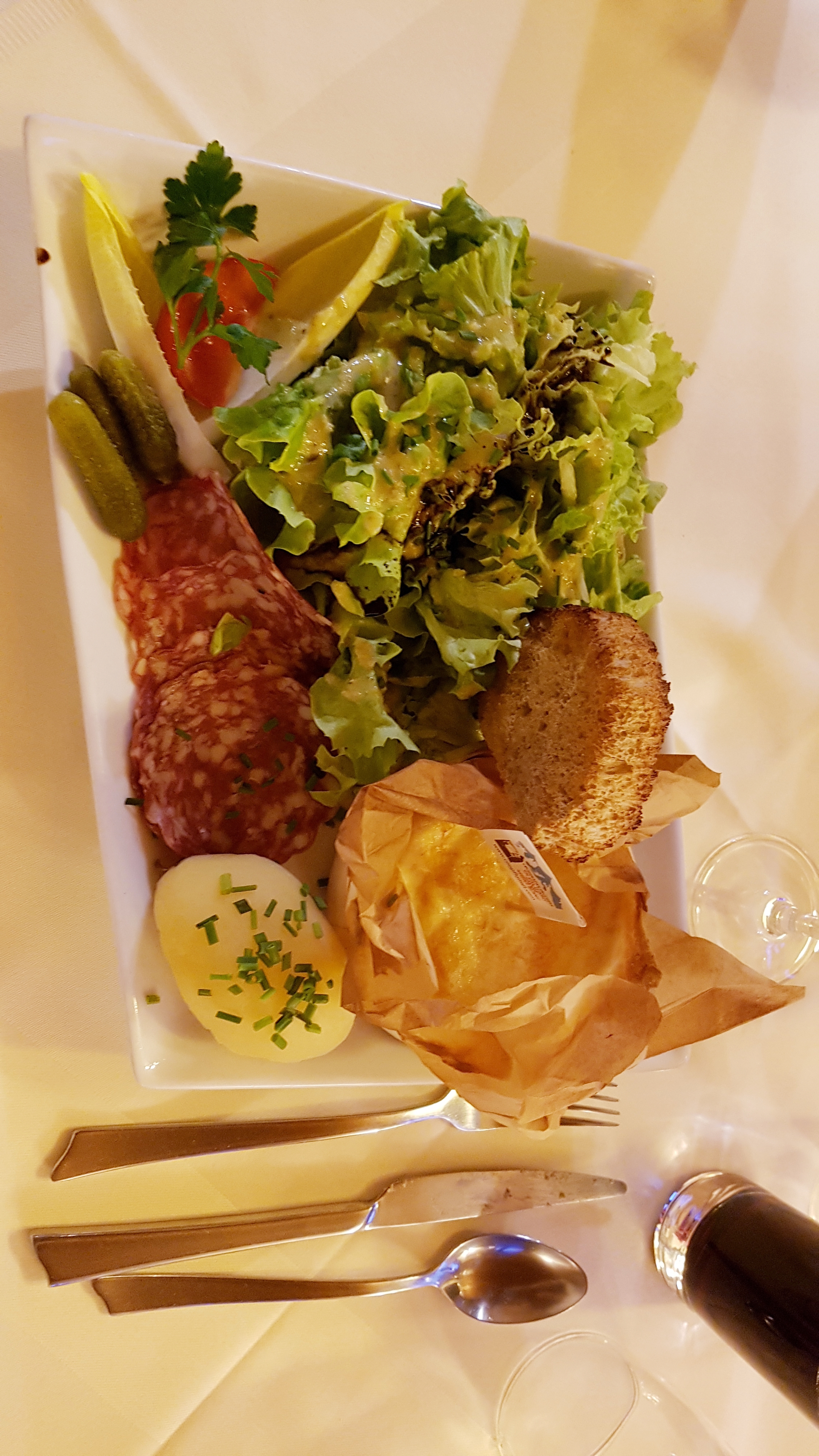 Bonsoir Venu hier avec des amies . Vous avez été pro mais sans empathie , c’est dommage . Le fromage est bon , la charcuterie elle n’est pas au rendez vous , les petits cornichons non plus , la vinaigrette des salades était pratiquement inexistante. C’est dommage tout ça car votre établissement est sympa . Je suis déçu dans la globalité