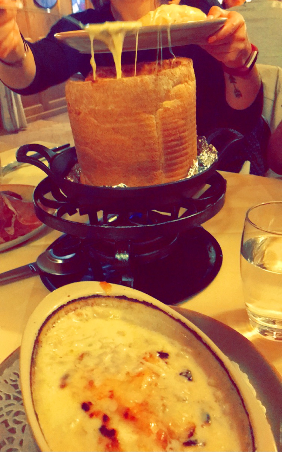 C'est un endroit idéal pour les amateurs de fromage. Dès que vous entrez, l'odeur du fromage de Munster chaud vous frappe. Mes amis et moi avons mangé le pain savoisien et c'était assez impressionnant à voir, c'était une cheminée de pain pleine de fromage à fondue fondu. Vous coupez l’extérieur pour atteindre le milieu ringard tout en trempant le pain dans la fondue. Si vous n'aimez pas le fromage, je ne recommanderais pas cet endroit car tout est à base de fromage.