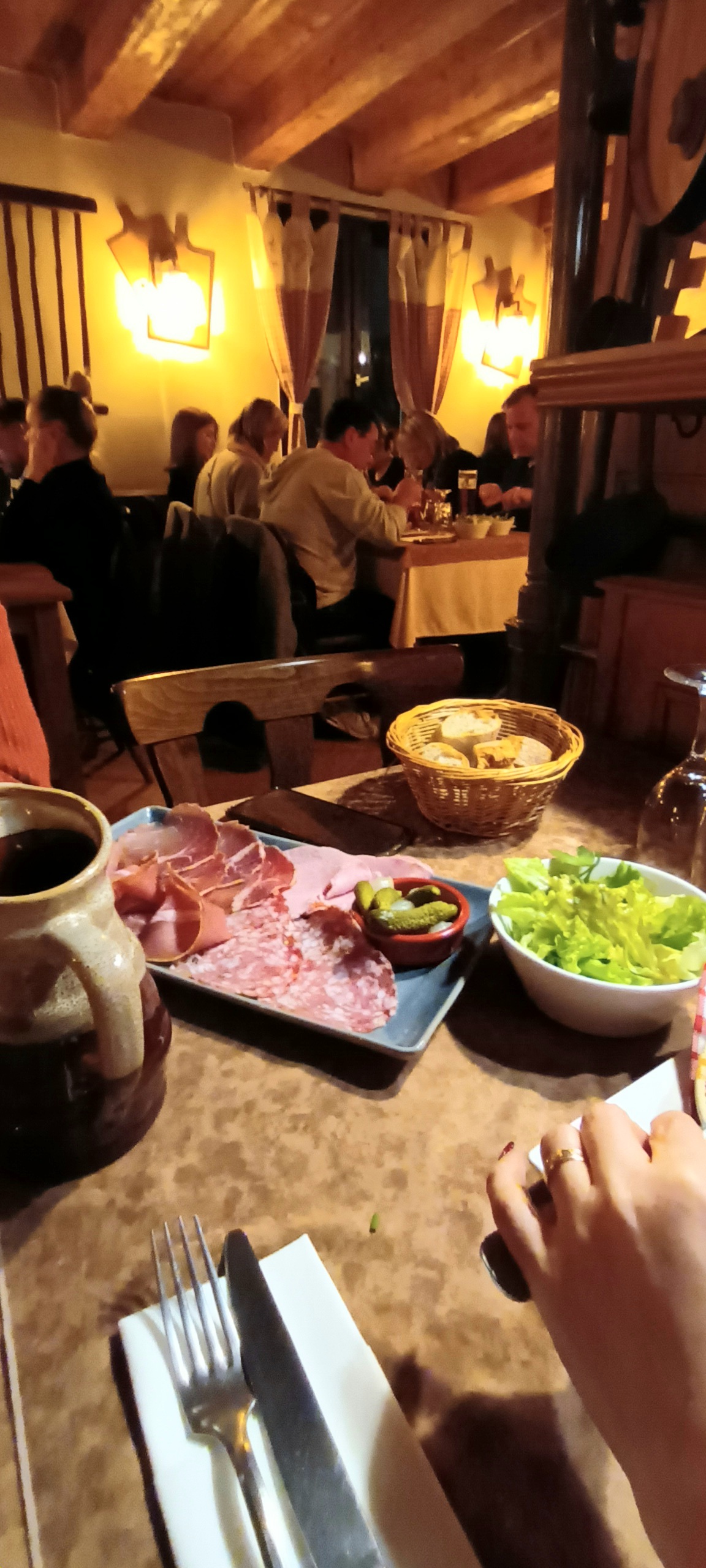 Une fondue savoyarde à Strasbourg ?! Niveau ambiance, on y est totalement, le resto ressemble à un petit chalet ! Niveau fondue, c’est un « BON » ! Nous avons pris une classique savoyarde pour 3 + 2 plateaux de charcuteries qui étaient suffisants ! Les quantités sont très généreuses (malgré 3 gourmands). Soirée dépaysante.