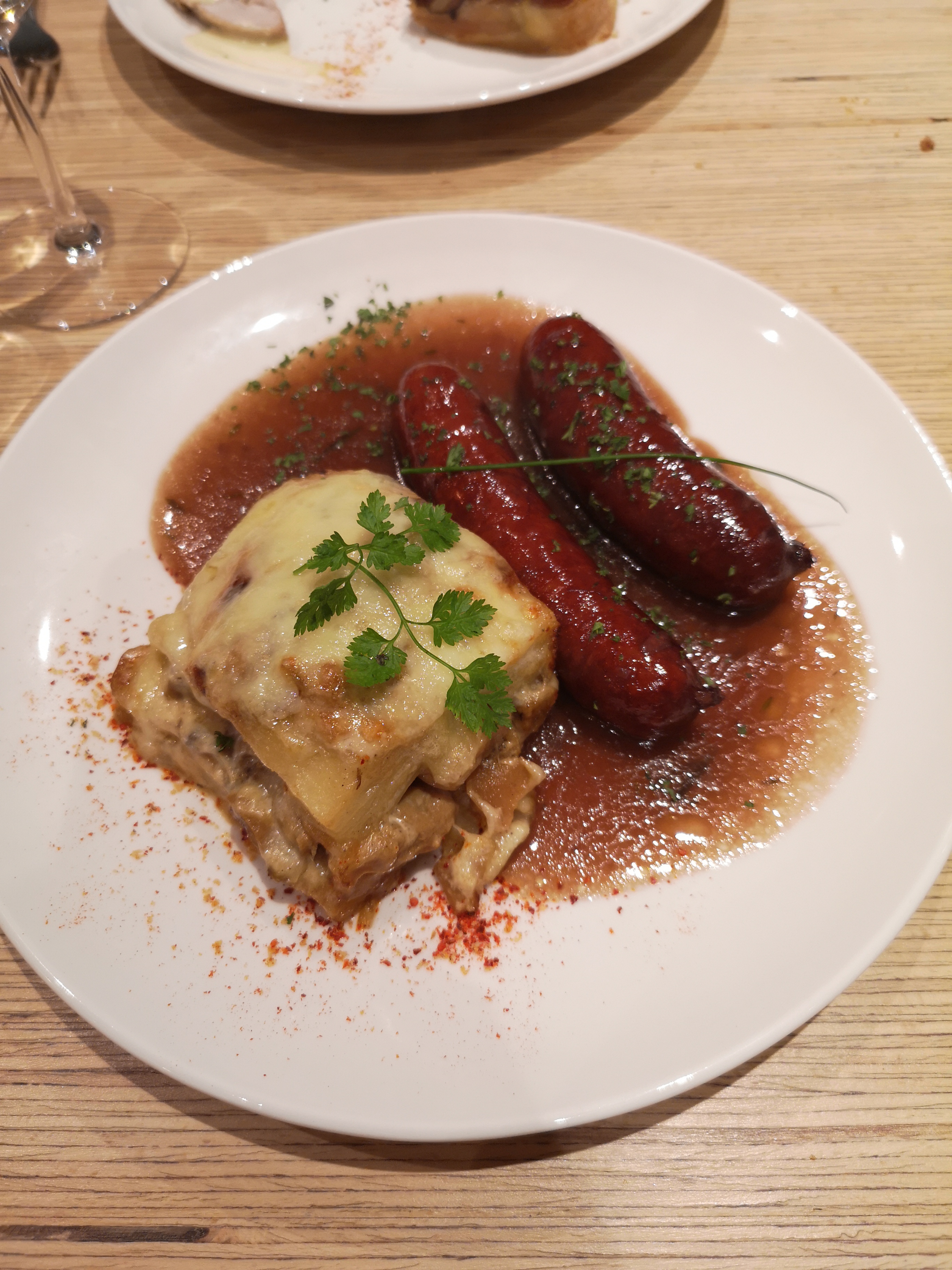 Nous avons adoré les os à moelle, les diots au vin rouge et le gratin dauphinois, vraiment exquis. Je n'avais rien mangé d'aussi bon et recherché depuis un moment ! Petite déception pour le dessert, qui ne nous a pas convaincu. L'entrée et le plat étaient si bons que le dessert à fais tâche, même si la profiterole et lz tiramisu étaient bons. Préparés à l'avance, et petit doute sur la profiterole qui est peut-être surgelée. Dommage ! Le service était cependant irréprochable, très efficace. L'ambiance y est chaleureuse, et la température de la salle était parfaite. Très bon rapport qualité/prix !