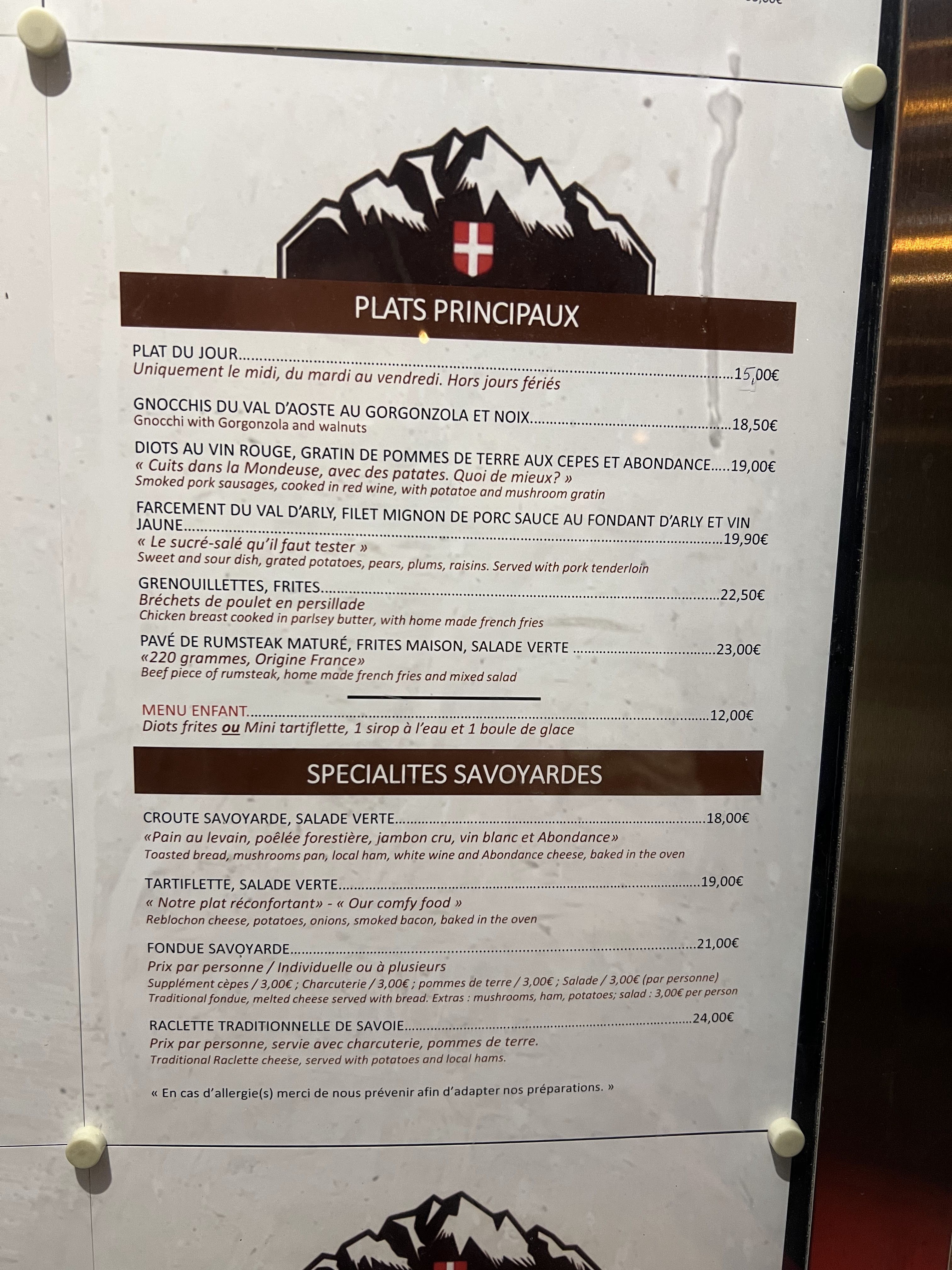 Bon resto de spécialités savoyardes. Des prix raisonnables mais la quantité des plats est limite. Les gros mangeurs seront déçus. Équipe de service très sympa. A visiter tout de même.