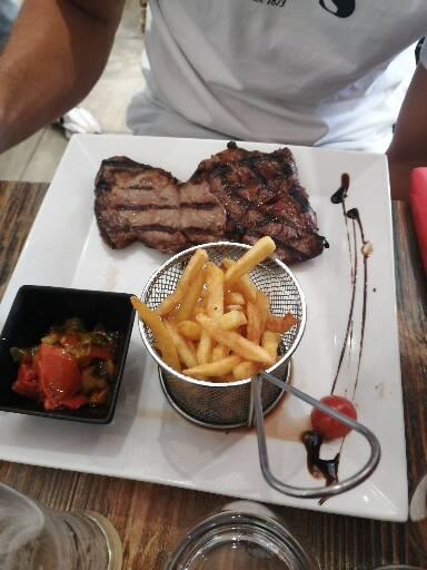 Je ne recommande pas, la bière a l'apéro était chaude, ce qui est vendu comme une entrecôte est enfaîte d'après moi un steak (voir photo), en accompagnement des frites qui était basiques et une mini portion de légume (je dirais 1 cuillère à soupe)! La persillade des gambas est immonde. Même le café était mauvais. Déception.